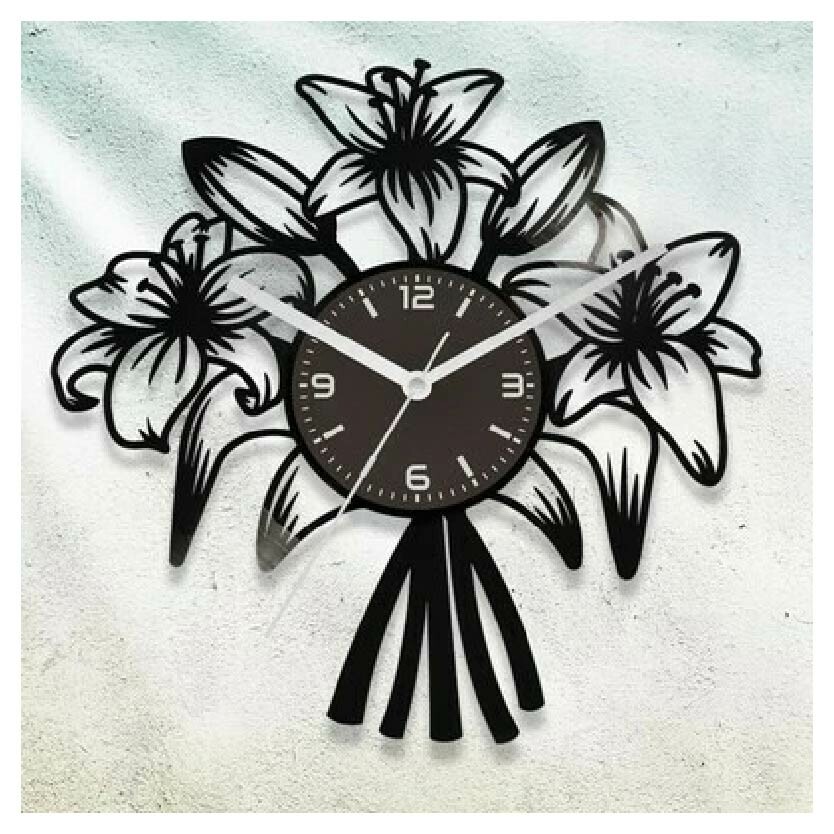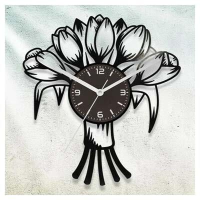 Bakelit óráinkat eredeti LP hanglemezből készítjük. A lemezből lézerrel vágjuk ki a kiválasztott mintát, majd egyedi számlapot ragasztunk rá. Az óraszerkezet csendes, folyamatos járású, fehér fém mutatókkal szereljük. Bizonyos óráinkra extra felirat - pld.: név - is kérhető.