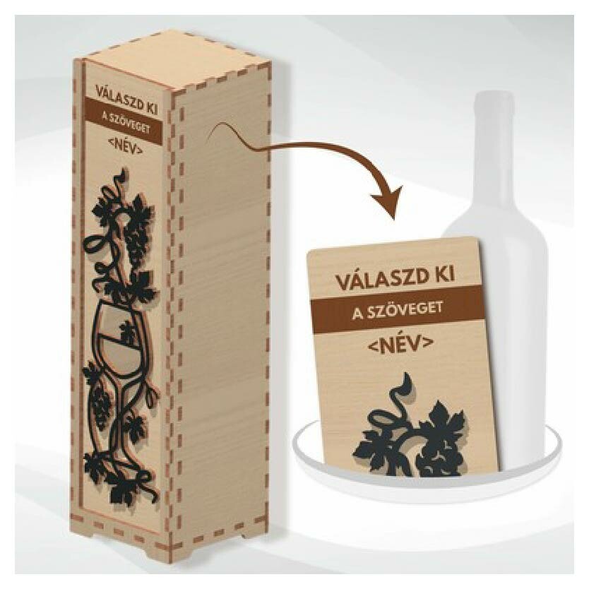 Italtartó dobozainkat fából - nyír rétegelt lemezből - készítjük. A feliratokat lézerrel gravírozzuk az anyagba. Több különböző mintából választhatsz. Tedd személyessé az ajándékot az egyedi feliratoddal!