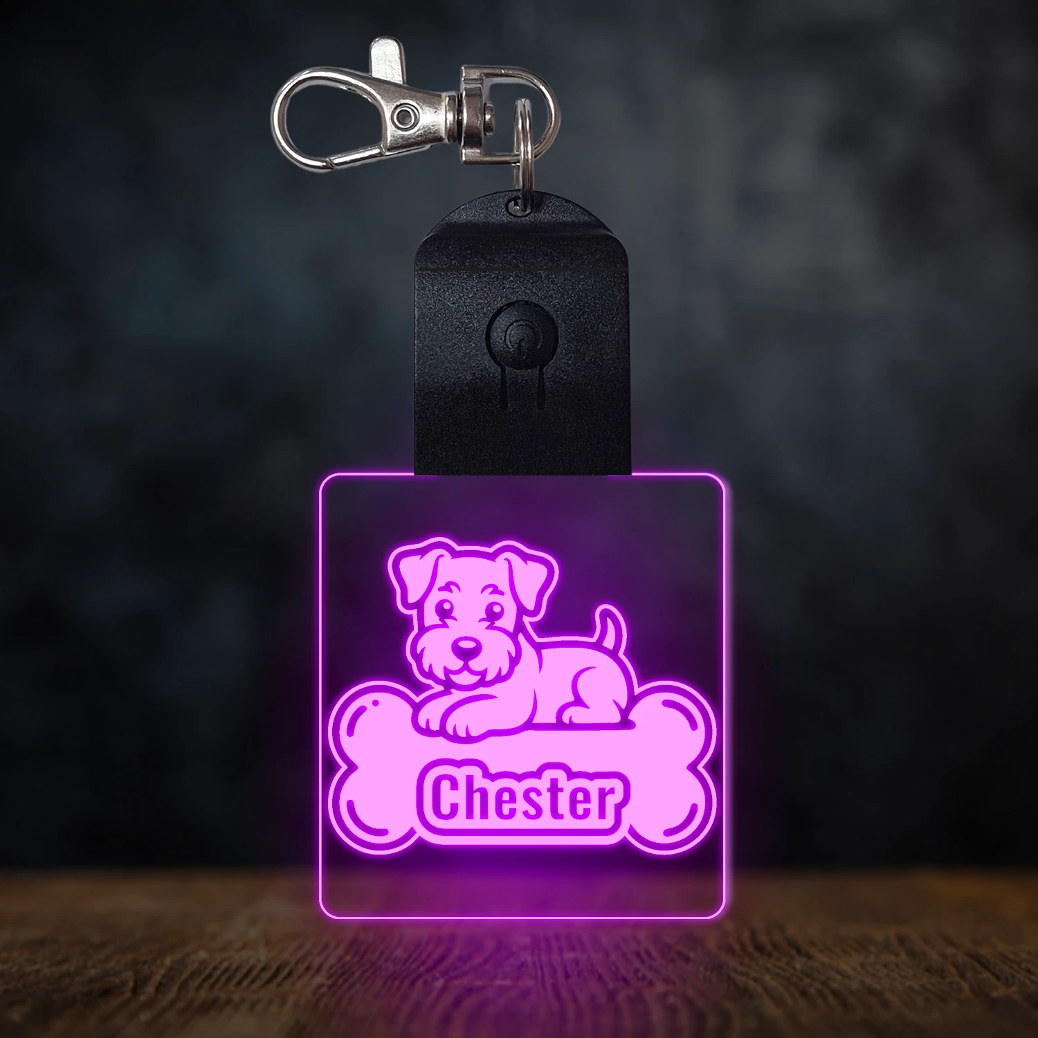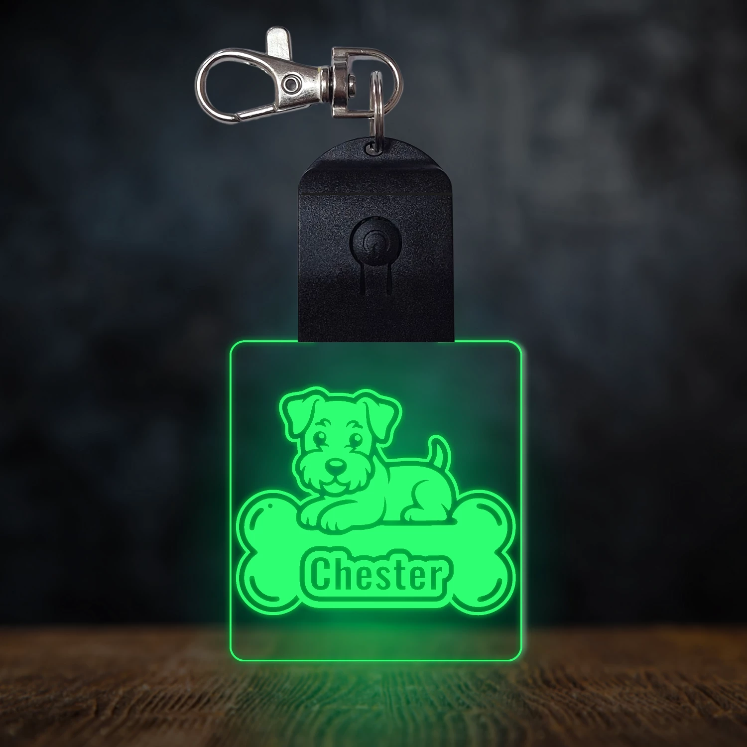 A kulcstartó különleges élvilágítással rendelkezik, amelynek hatására a bekapcsolt állapotban az akril lap színe megváltozik. Alapvetően az akril átlátszó, azonban amikor bekapcsoljuk, a gravírozott részek színesen ragyognak. Kikapcsolt állapotban az átlátszó akrilon, a gravírozott részek fehér színnel láthatóak, így jól kivehetőek maradnak. 🎁