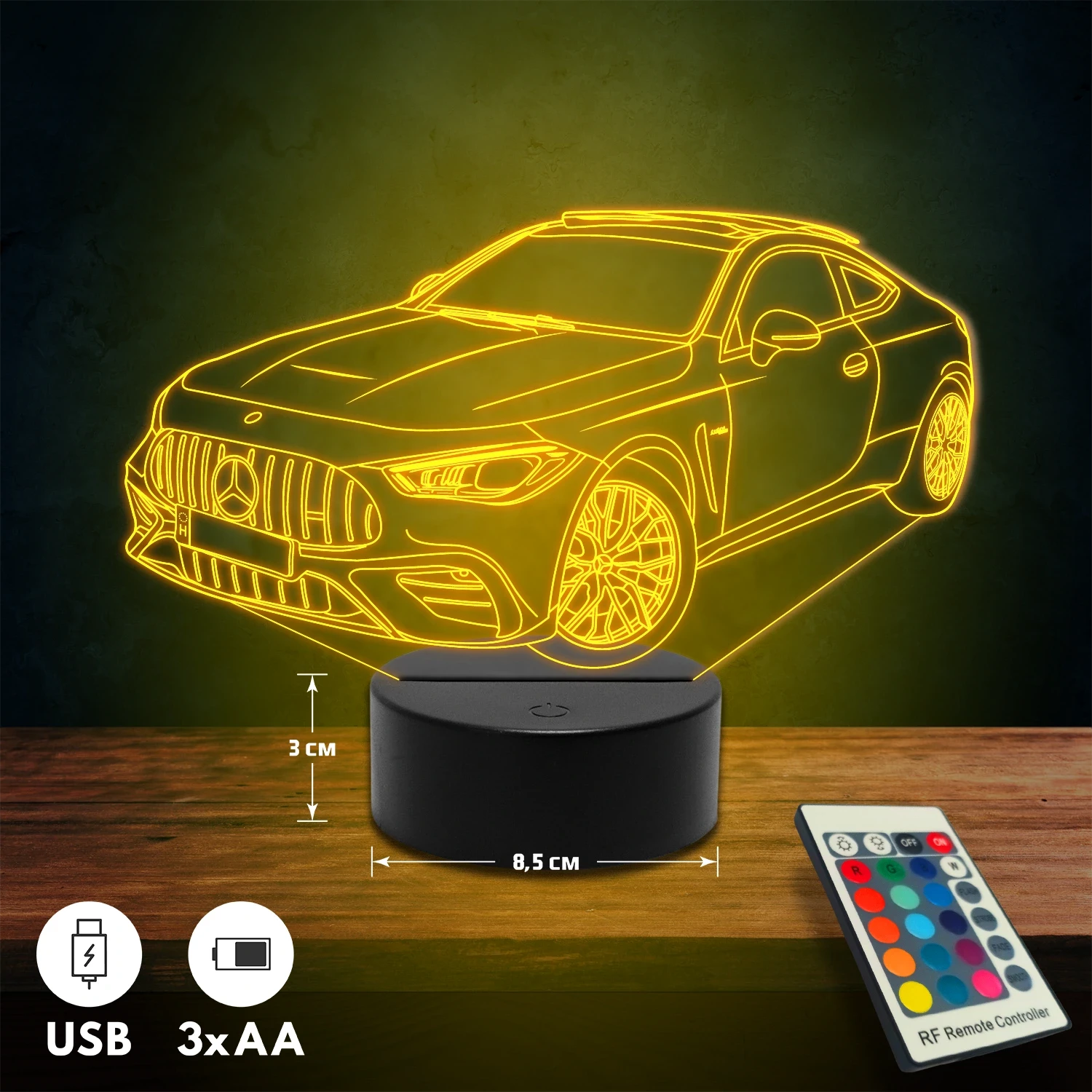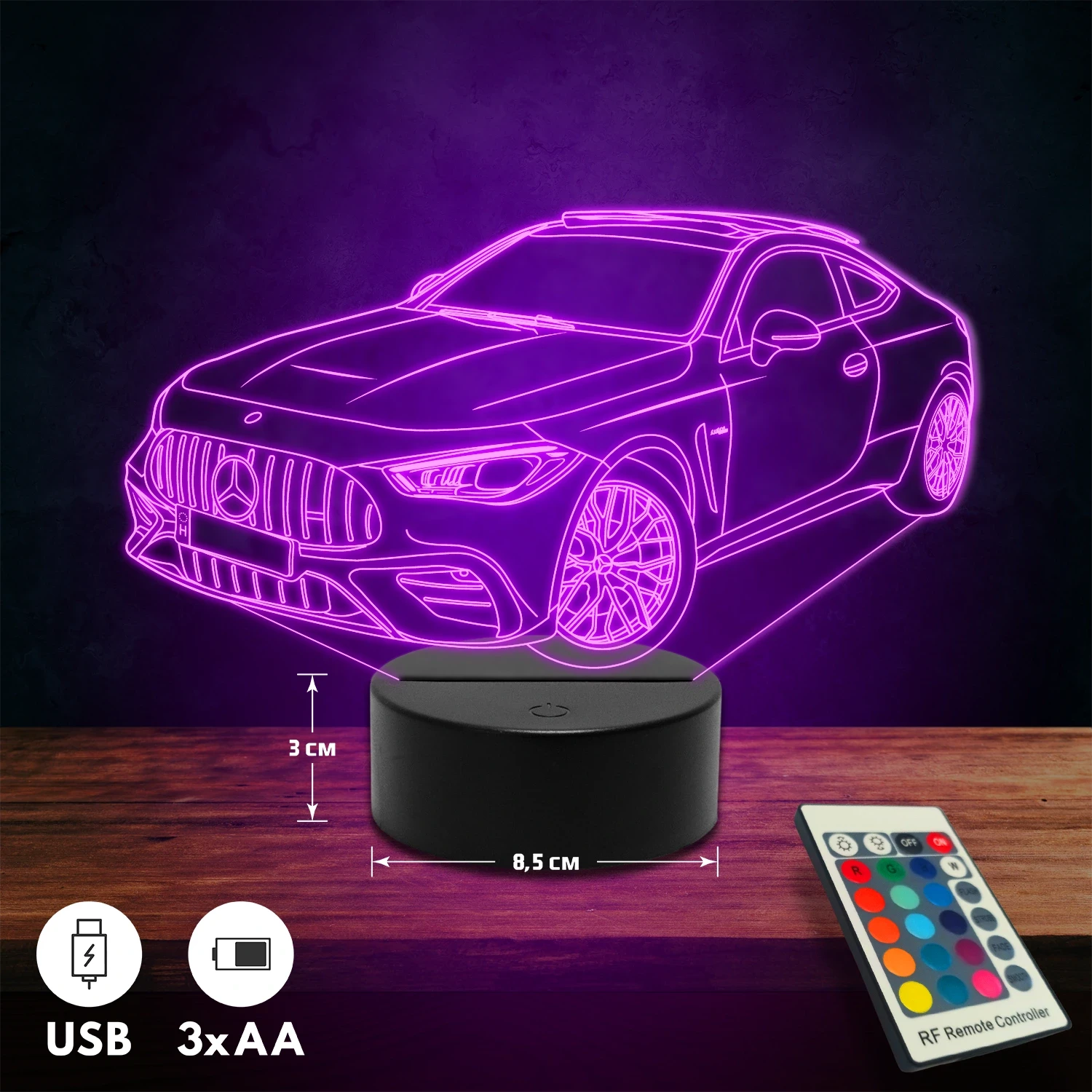 A 3D hatású led lámpa különlegessége, hogy tematikus mintákkal készül, és kérésedre egyedi felirattal (név, dátum, rövid üzenet) is kiegészíthető. Rendszám gravírozására is van lehetőség autós mintáinknál, így személyes és különleges ajándék, amely bármilyen alkalomra tökéletes választás. 🎁