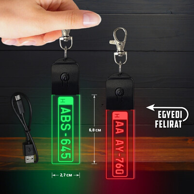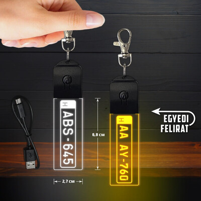Autós világító led kulcstartó - Egyedi rendszámmal