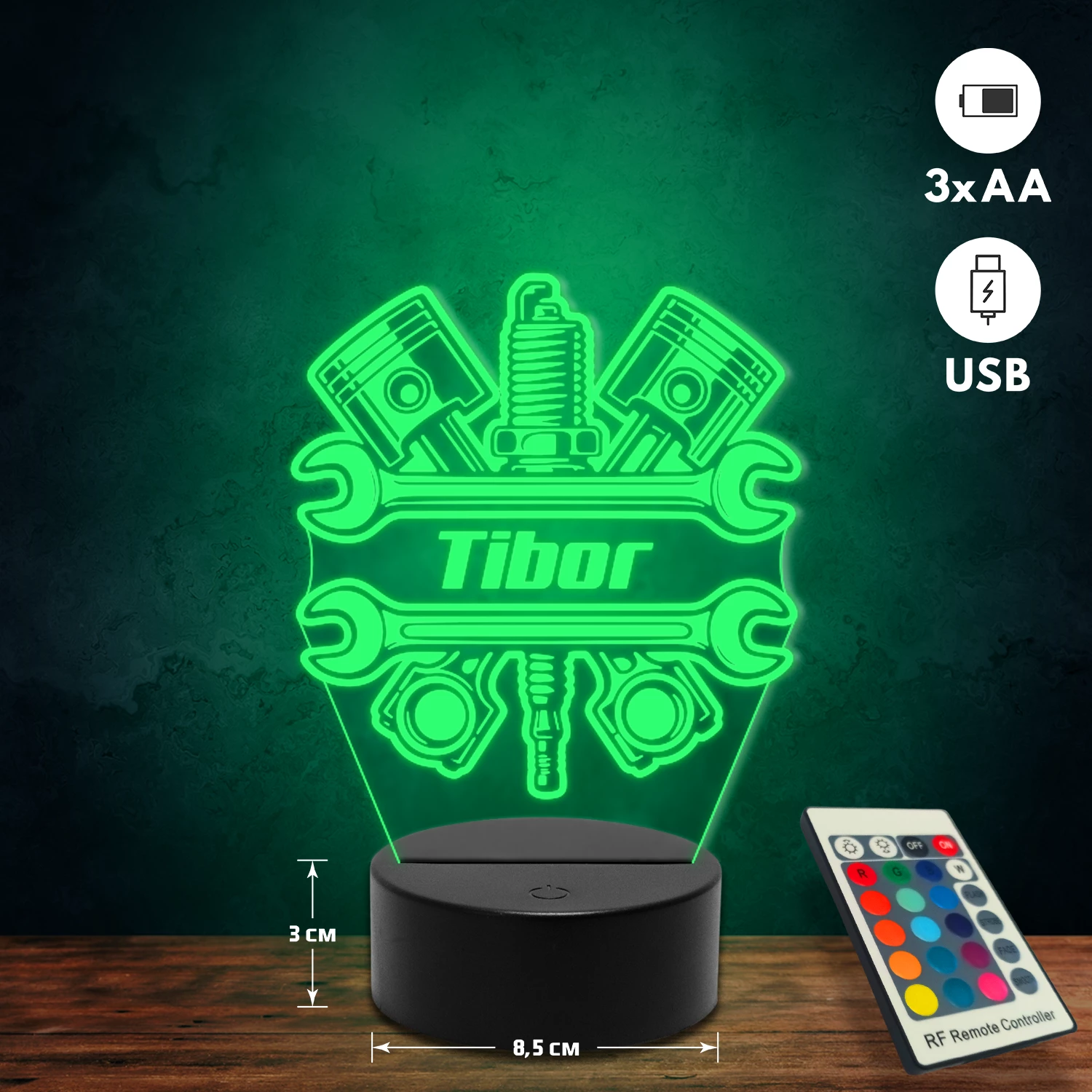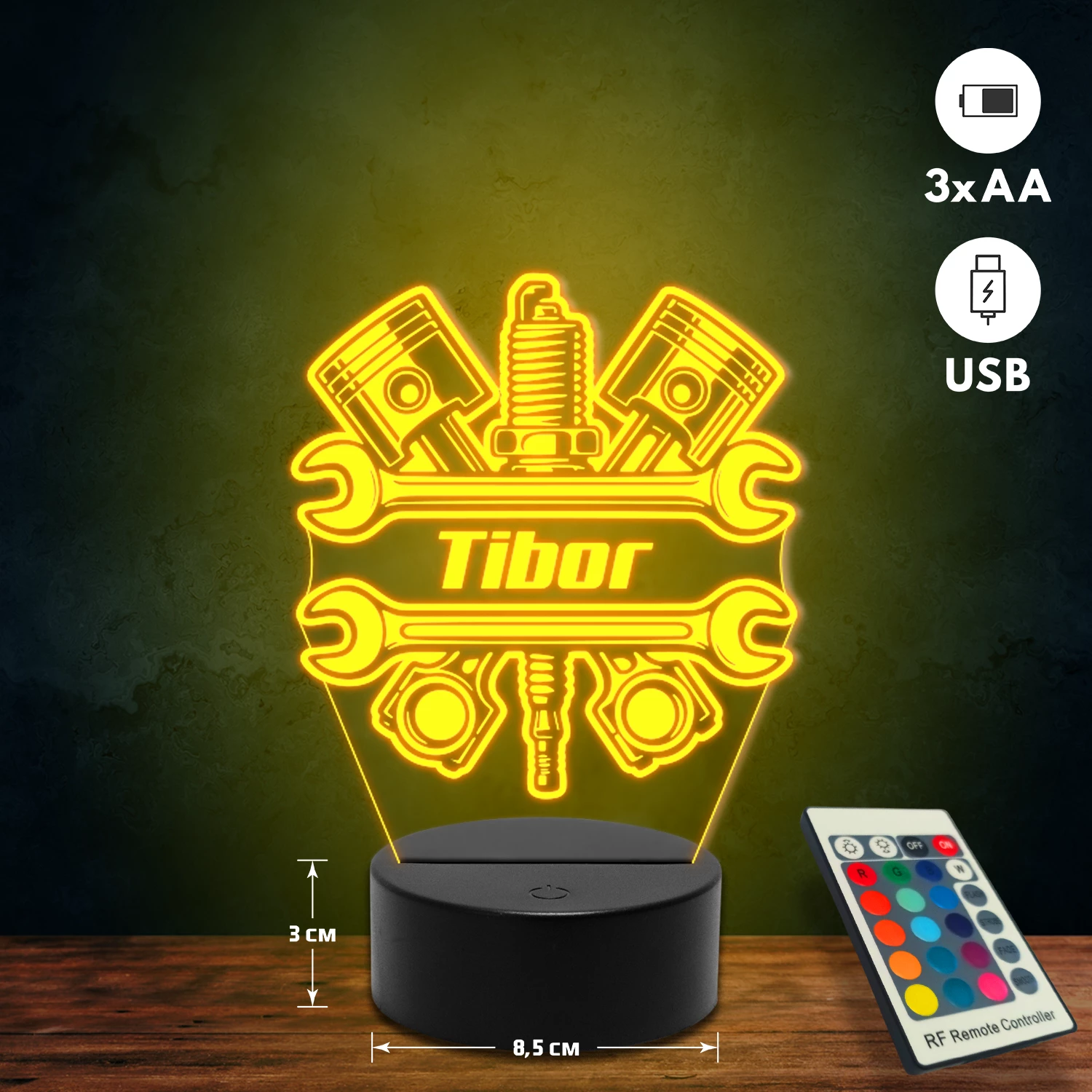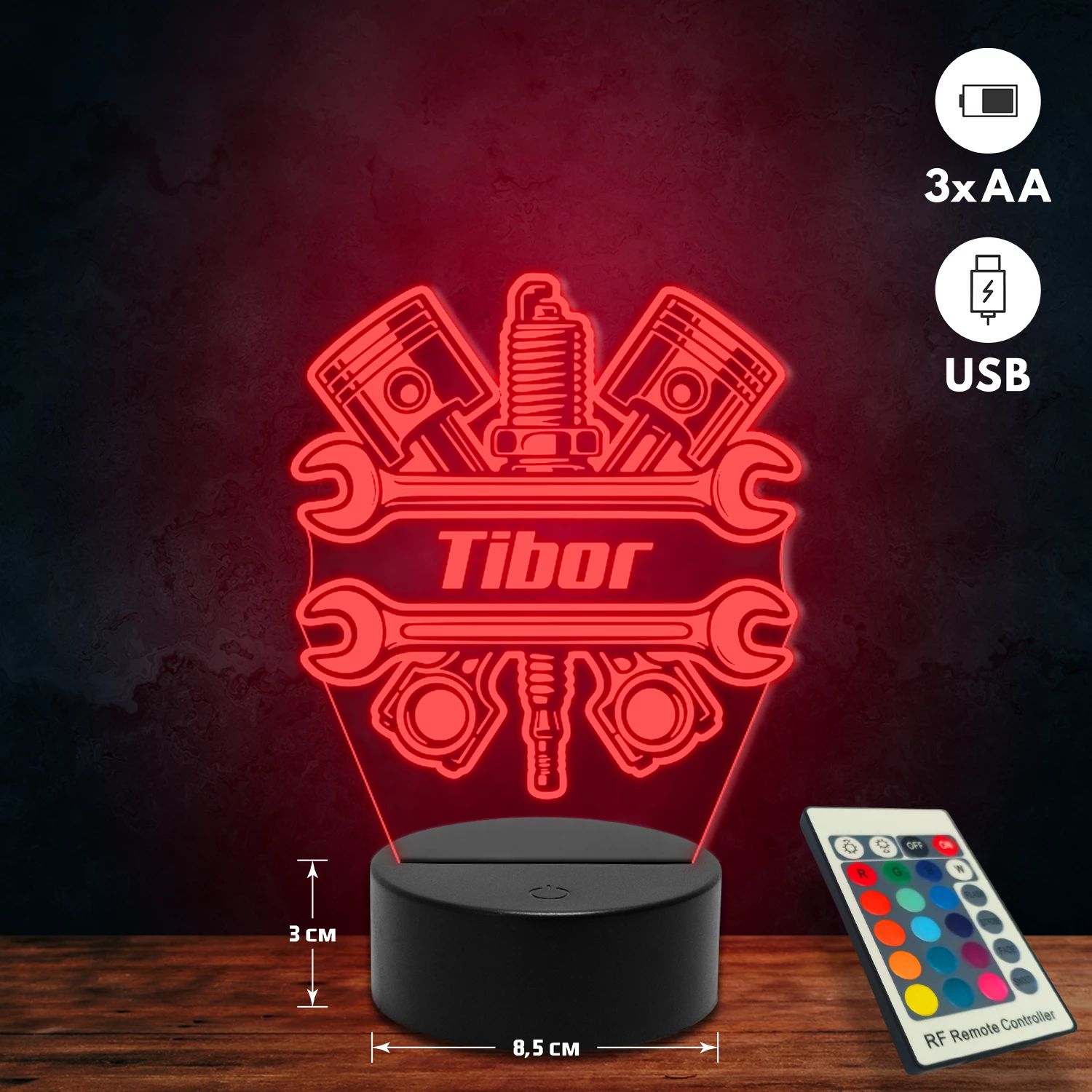 A 3D hatású led lámpa különlegessége, hogy tematikus mintákkal készül, és kérésedre egyedi felirattal (név, dátum, rövid üzenet) is kiegészíthető. Rendszám gravírozására is van lehetőség autós mintáinknál, így személyes és különleges ajándék, amely bármilyen alkalomra tökéletes választás. 🎁