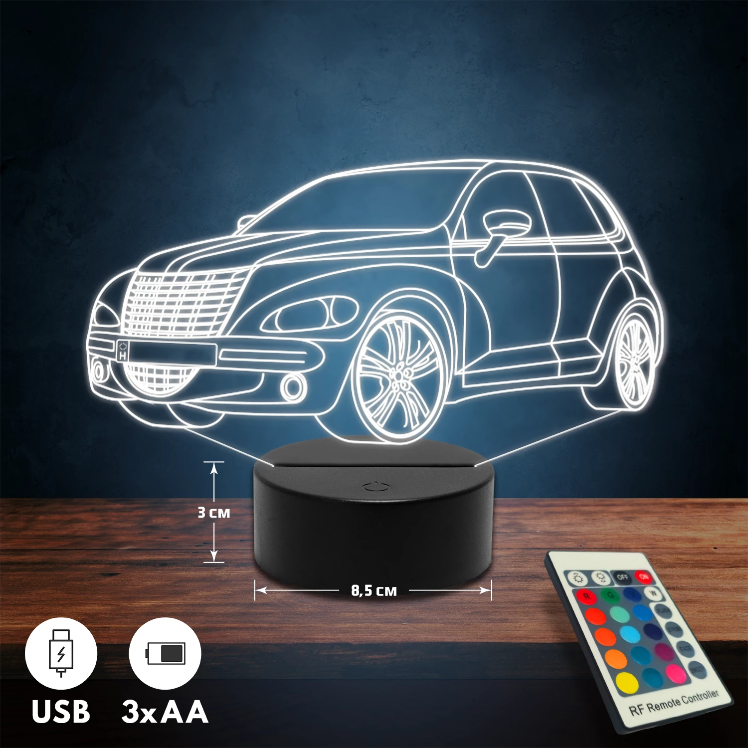 A 3D hatású led lámpa különlegessége, hogy tematikus mintákkal készül, és kérésedre egyedi felirattal (név, dátum, rövid üzenet) is kiegészíthető. Rendszám gravírozására is van lehetőség autós mintáinknál, így személyes és különleges ajándék, amely bármilyen alkalomra tökéletes választás. 🎁