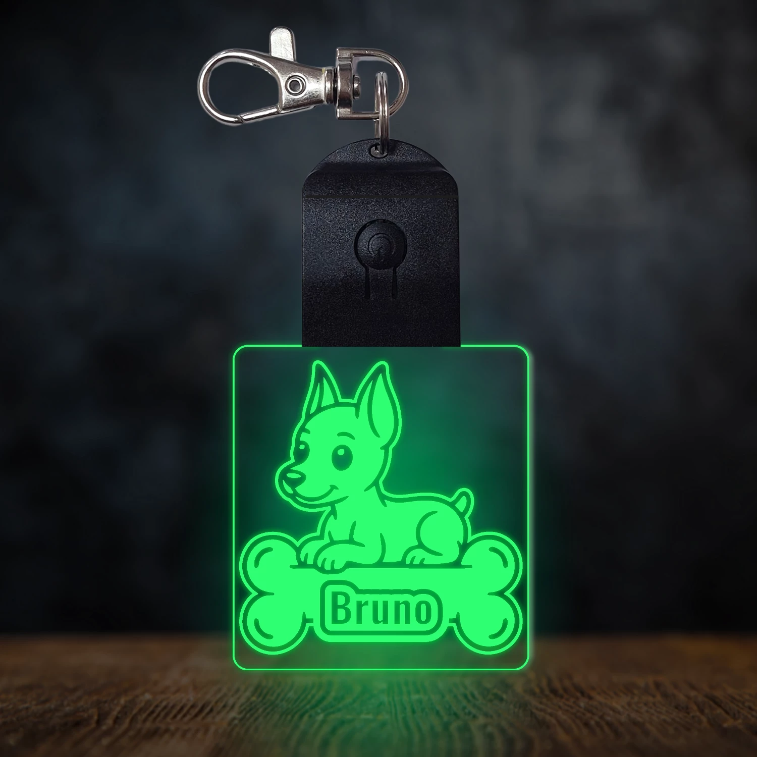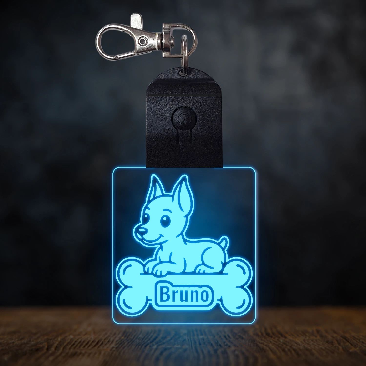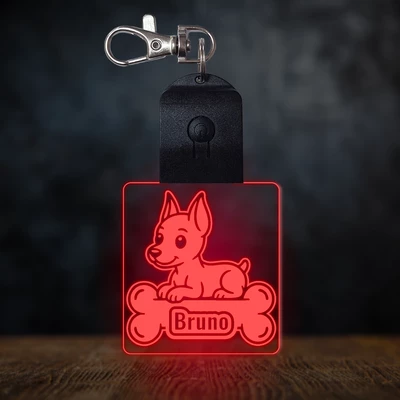 Dobermann világító led kulcstartó - Egyedi felirattal