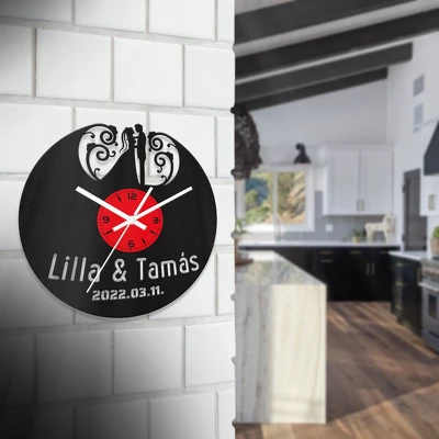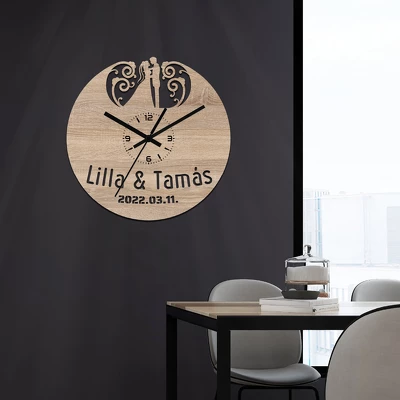 Bármelyik óránkra kérhetsz egyedi feliratot. A feliratokat – a minta alakzataihoz hasonlóan – kivágással készítjük el. A gyártáshoz stencil betűtípust használunk. Hosszabb vagy nagyobb méretű szövegeknél az alap mintán is végzünk kisebb módosításokat. A képek között találsz néhány példát egyedi feliratos óráinkról, amelyeket korábbi megrendelésekhez készítettünk.