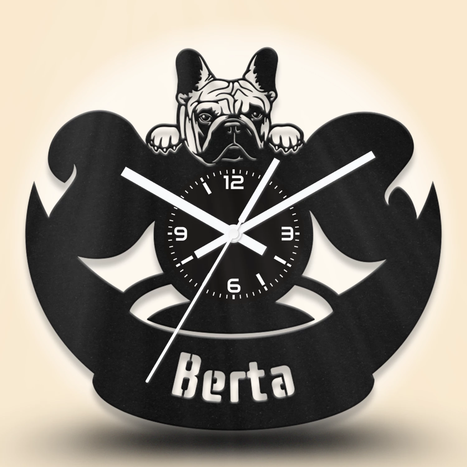Bármelyik óránkra kérhetsz egyedi feliratot. A feliratokat – a minta alakzataihoz hasonlóan – kivágással készítjük el. A gyártáshoz stencil betűtípust használunk. Hosszabb vagy nagyobb méretű szövegeknél az alap mintán is végzünk kisebb módosításokat. A képek között találsz néhány példát egyedi feliratos óráinkról, amelyeket korábbi megrendelésekhez készítettünk.