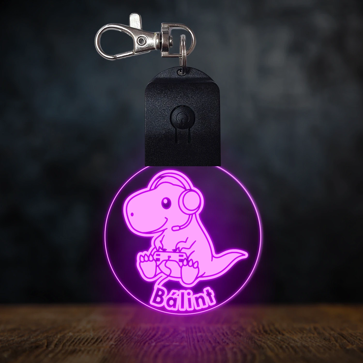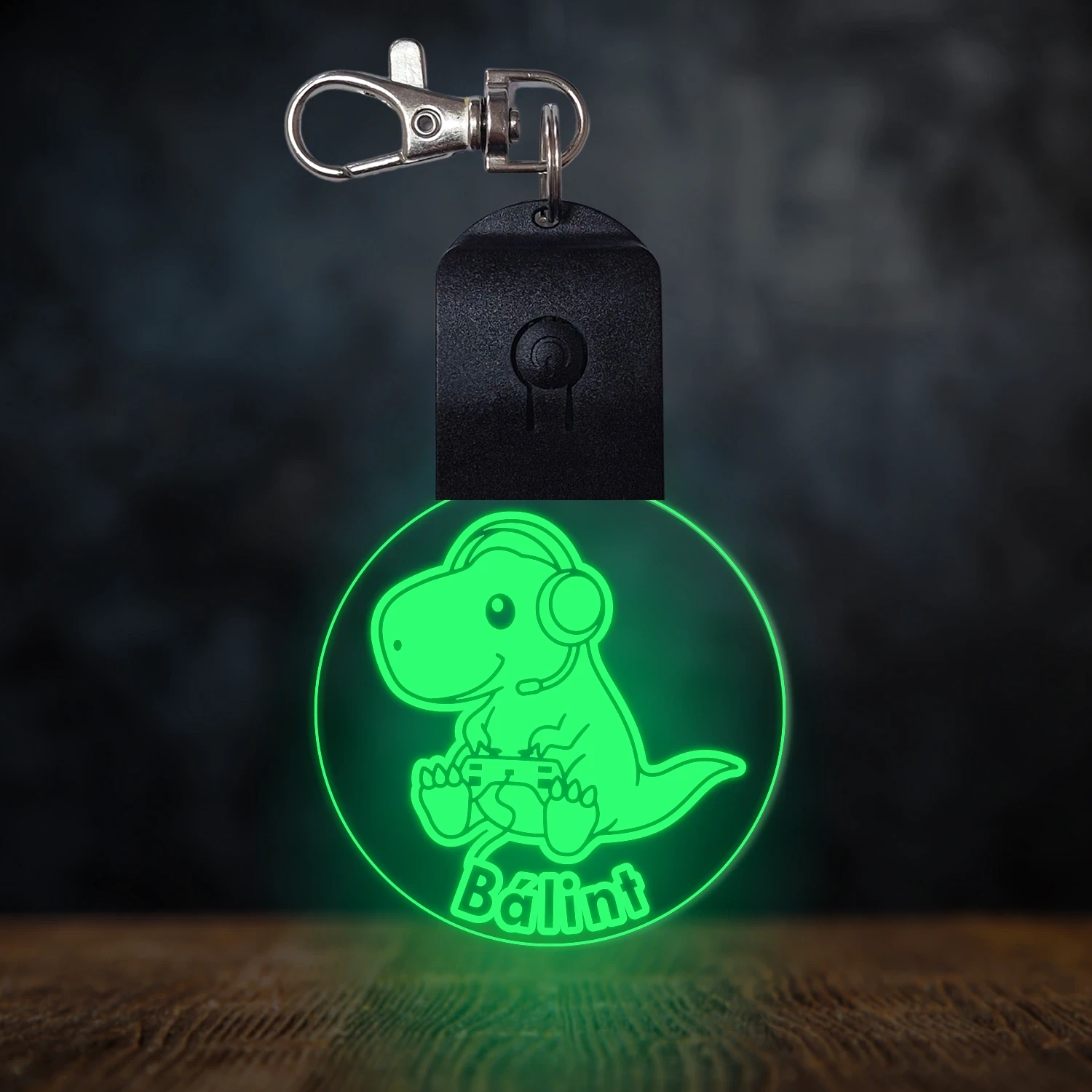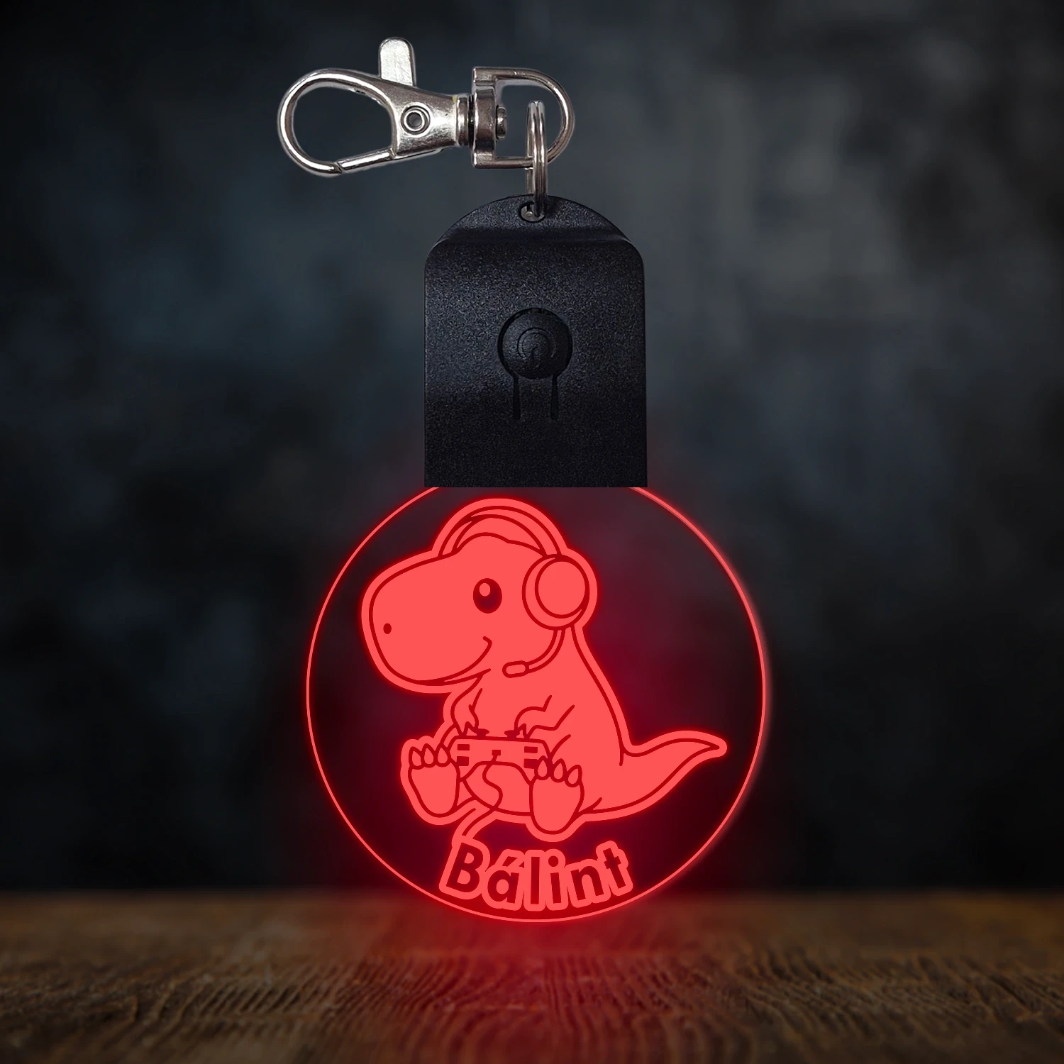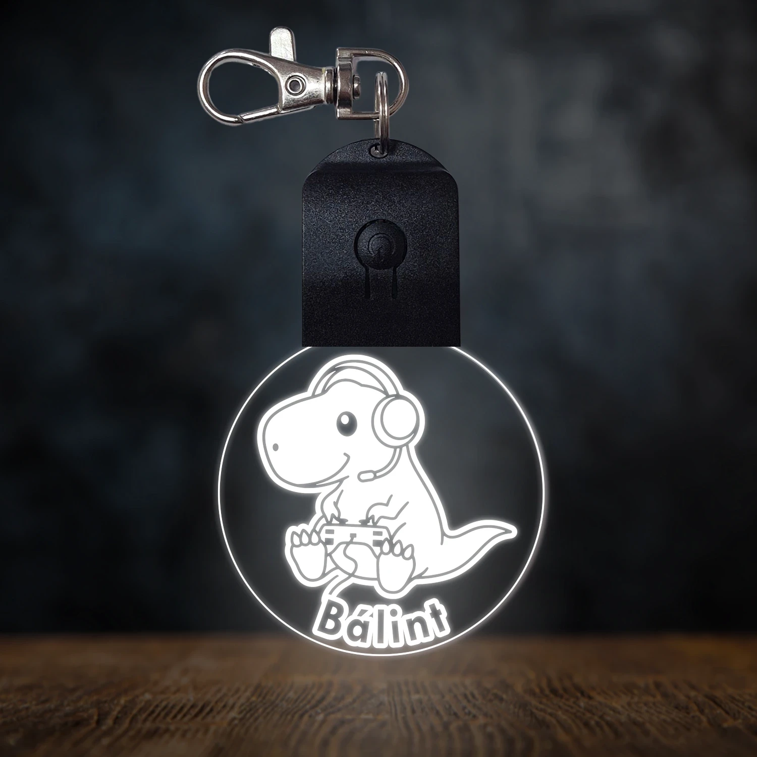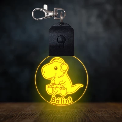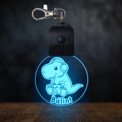 Gamer dínó világító led kulcstartó - Egyedi felirattal