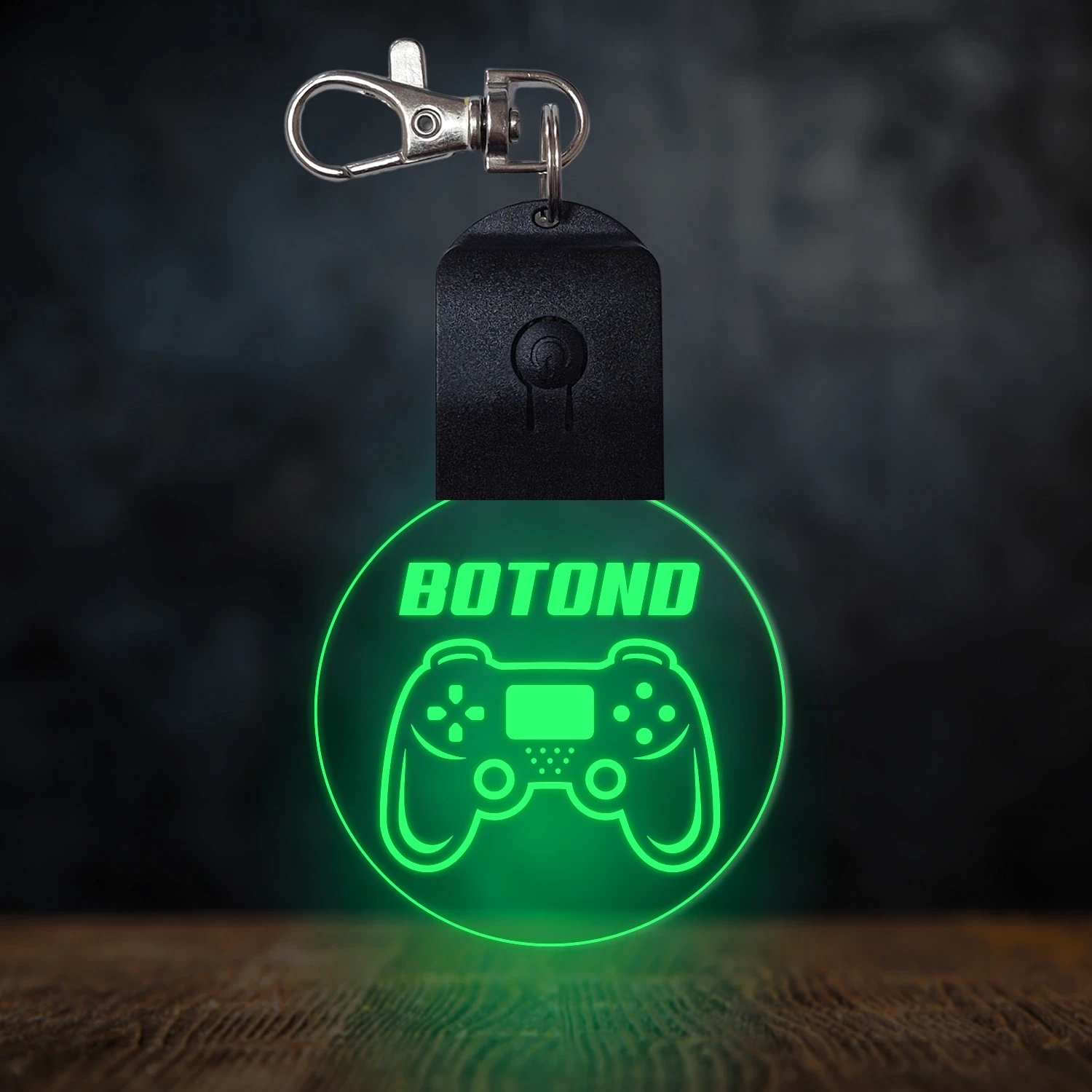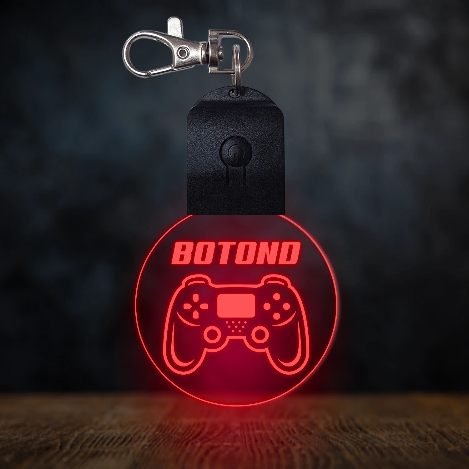 A kulcstartó különleges élvilágítással rendelkezik, amelynek hatására a bekapcsolt állapotban az akril lap színe megváltozik. Alapvetően az akril átlátszó, azonban amikor bekapcsoljuk, a gravírozott részek színesen ragyognak. Kikapcsolt állapotban az átlátszó akrilon, a gravírozott részek fehér színnel láthatóak, így jól kivehetőek maradnak. 🎁