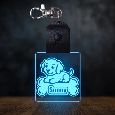 Golden Retriever világító led kulcstartó - Egyedi felirattal