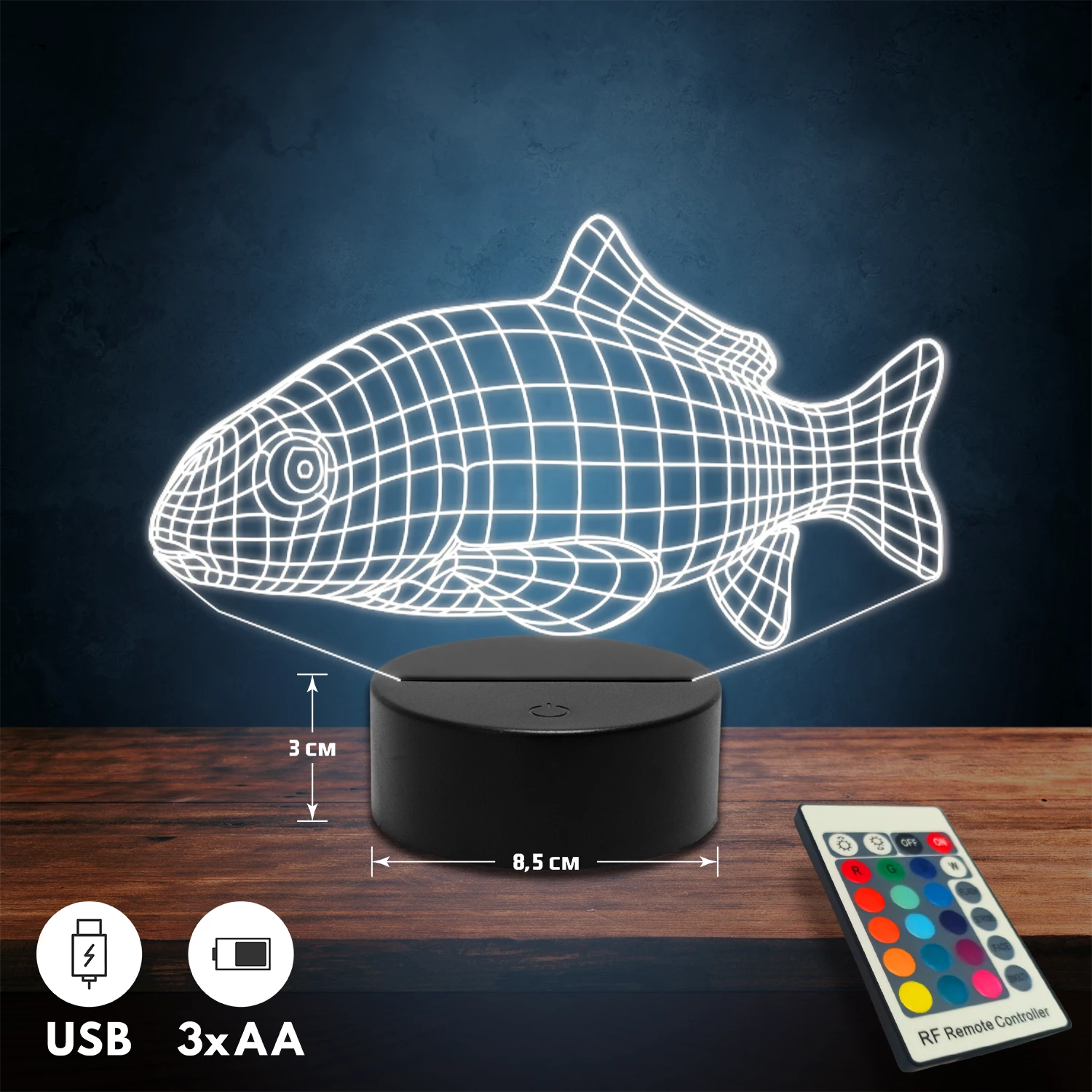 A 3D lámpa USB-kábellel is működtethető, amelyet egyszerűen csatlakoztathatsz számítógéphez, laptophoz vagy hálózati adapterhez. Emellett 3 darab AA elemmel is üzemeltethető (a csomag nem tartalmazza). A lámpa 16 különböző színben világíthat, emellett választhatóak a színváltási módok is: gyors villogás, lassú villogás vagy fokozatos színátmenet. A fény kellemesen lágy, a fényerőt pedig könnyedén állíthatod a mellékelt távirányító segítségével.