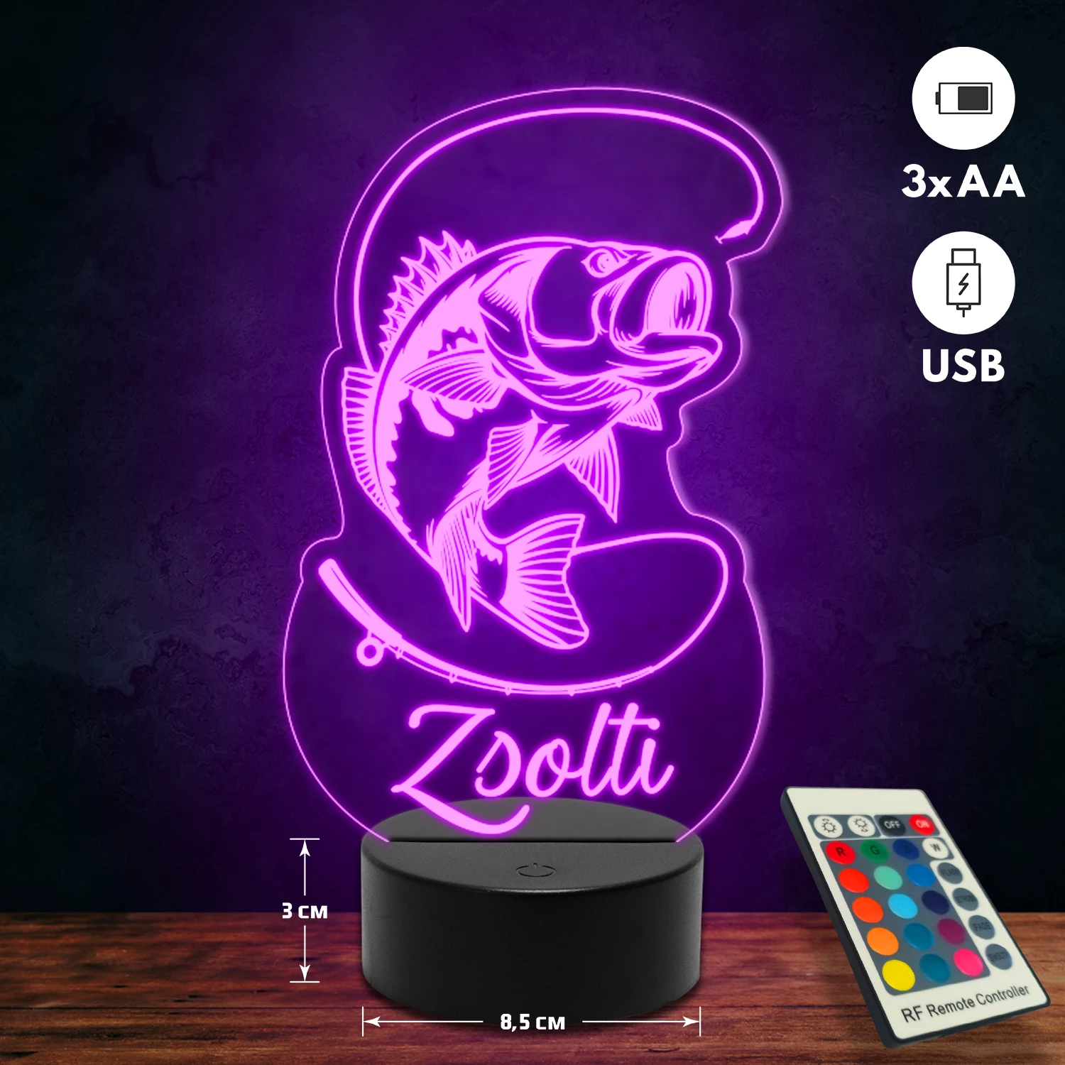 A 3D hatású led lámpa különlegessége, hogy tematikus mintákkal készül, és kérésedre egyedi felirattal (név, dátum, rövid üzenet) is kiegészíthető. Rendszám gravírozására is van lehetőség autós mintáinknál, így személyes és különleges ajándék, amely bármilyen alkalomra tökéletes választás. 🎁