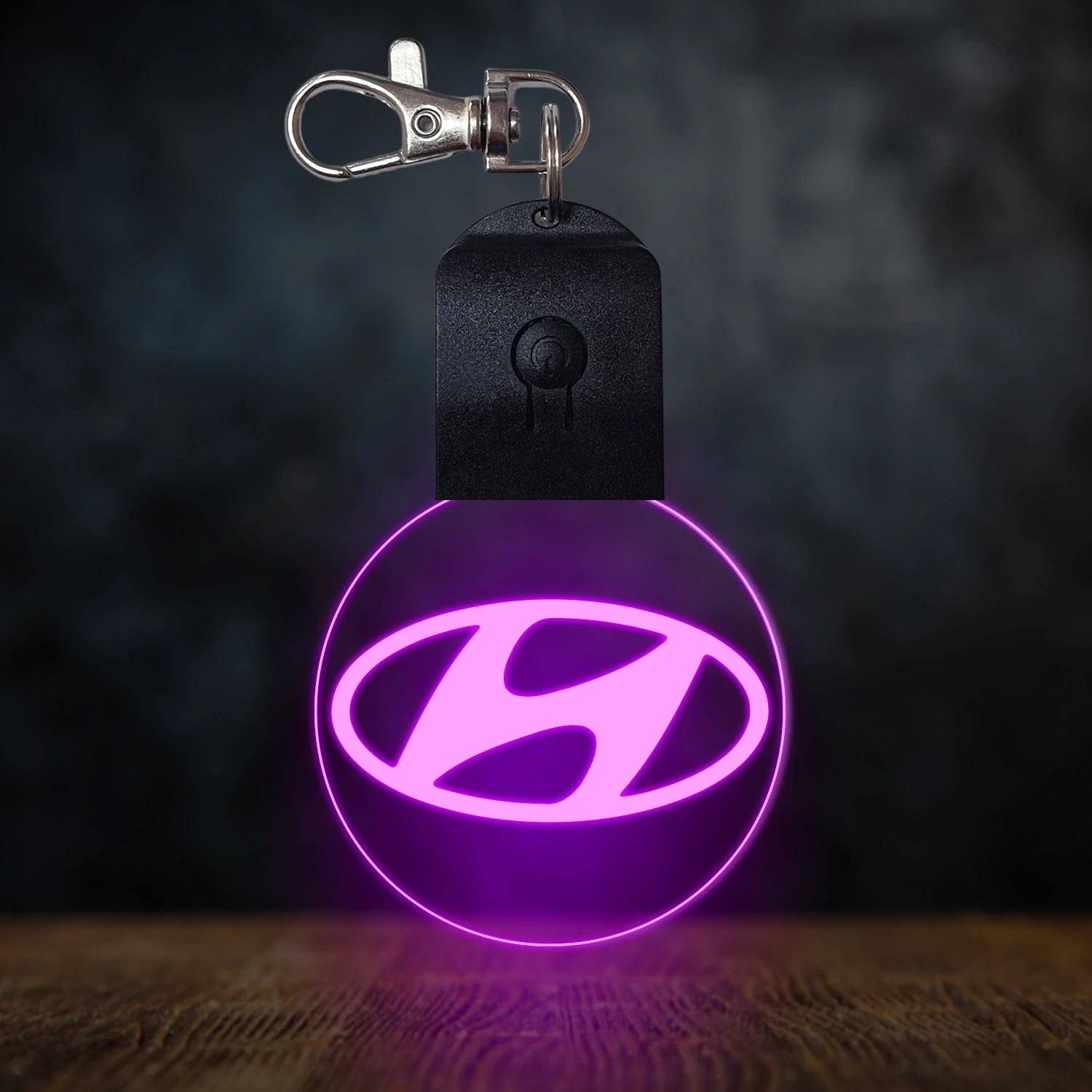 A kulcstartó különleges élvilágítással rendelkezik, amelynek hatására a bekapcsolt állapotban az akril lap színe megváltozik. Alapvetően az akril átlátszó, azonban amikor bekapcsoljuk, a gravírozott részek színesen ragyognak. Kikapcsolt állapotban az átlátszó akrilon, a gravírozott részek fehér színnel láthatóak, így jól kivehetőek maradnak. 🎁