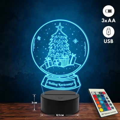 | Tartozékok: | Lézervágott, gravírozott akril lemez (Vastagság - 4 mm), Érintő gombos befogó talp (Átmérő - 8,5 cm, Magasság - 3,8 cm), Micro USB kábel (Hossz - 80 cm), Távirányító, Az elemet a csomag nem tartalmazza! |