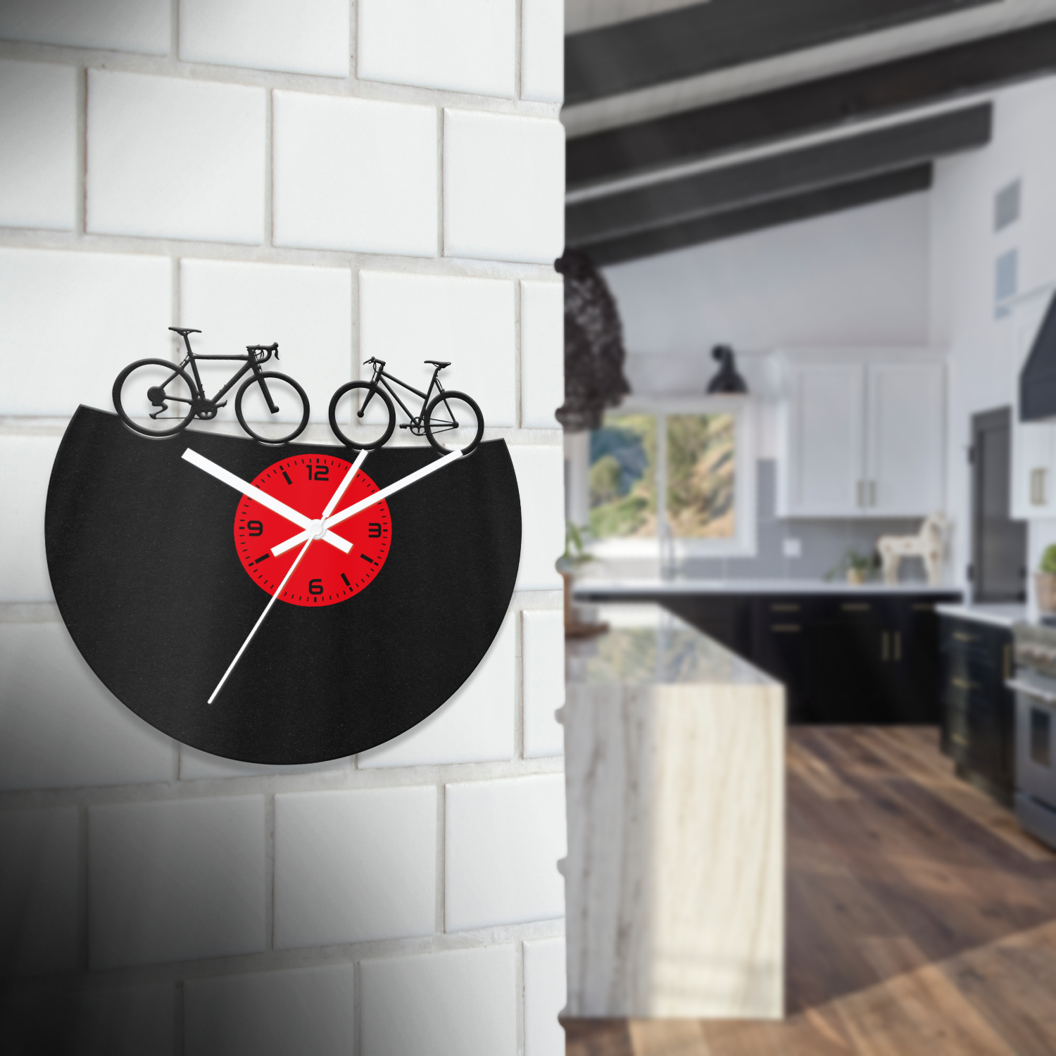 Kerékpáros fa falióra