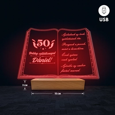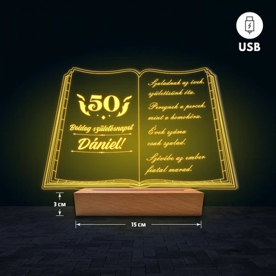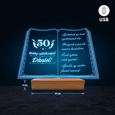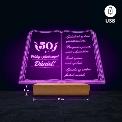 Könyv egyedi feliratos 3D Led lámpa - Születésnap