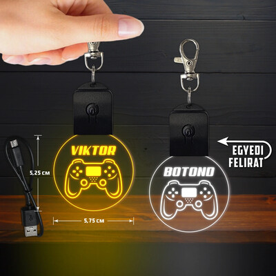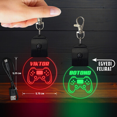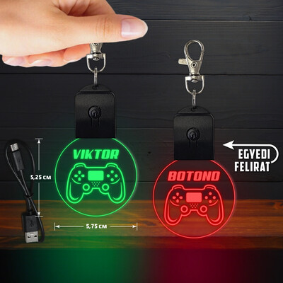 A kulcstartó különleges élvilágítással rendelkezik, amelynek hatására a bekapcsolt állapotban az akril lap színe megváltozik. Alapvetően az akril átlátszó, azonban amikor bekapcsoljuk, a gravírozott részek színesen ragyognak. Kikapcsolt állapotban az átlátszó akrilon, a gravírozott részek fehér színnel láthatóak, így jól kivehetőek maradnak.