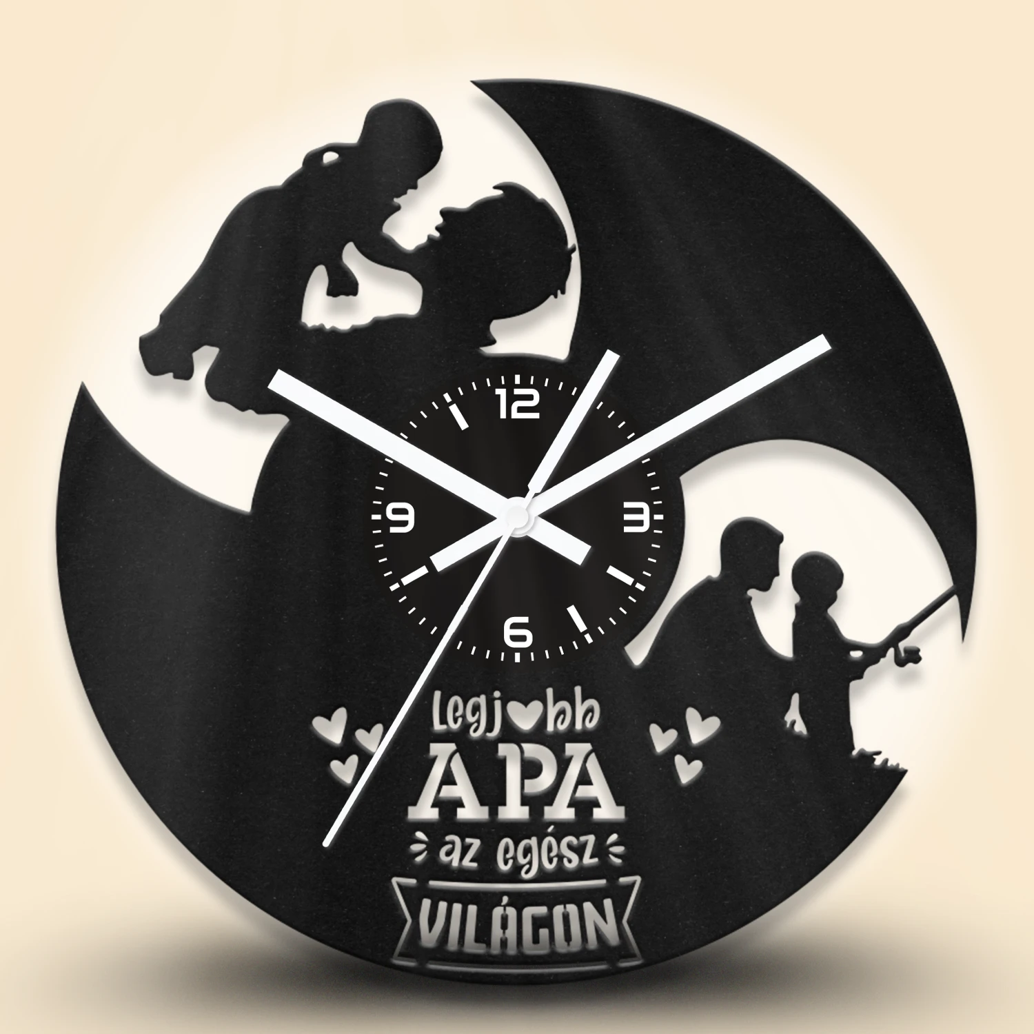 Bármelyik óránkra kérhetsz egyedi feliratot. A feliratokat – a minta alakzataihoz hasonlóan – kivágással készítjük el. A gyártáshoz stencil betűtípust használunk. Hosszabb vagy nagyobb méretű szövegeknél az alap mintán is végzünk kisebb módosításokat. A képek között találsz néhány példát egyedi feliratos óráinkról, amelyeket korábbi megrendelésekhez készítettünk.