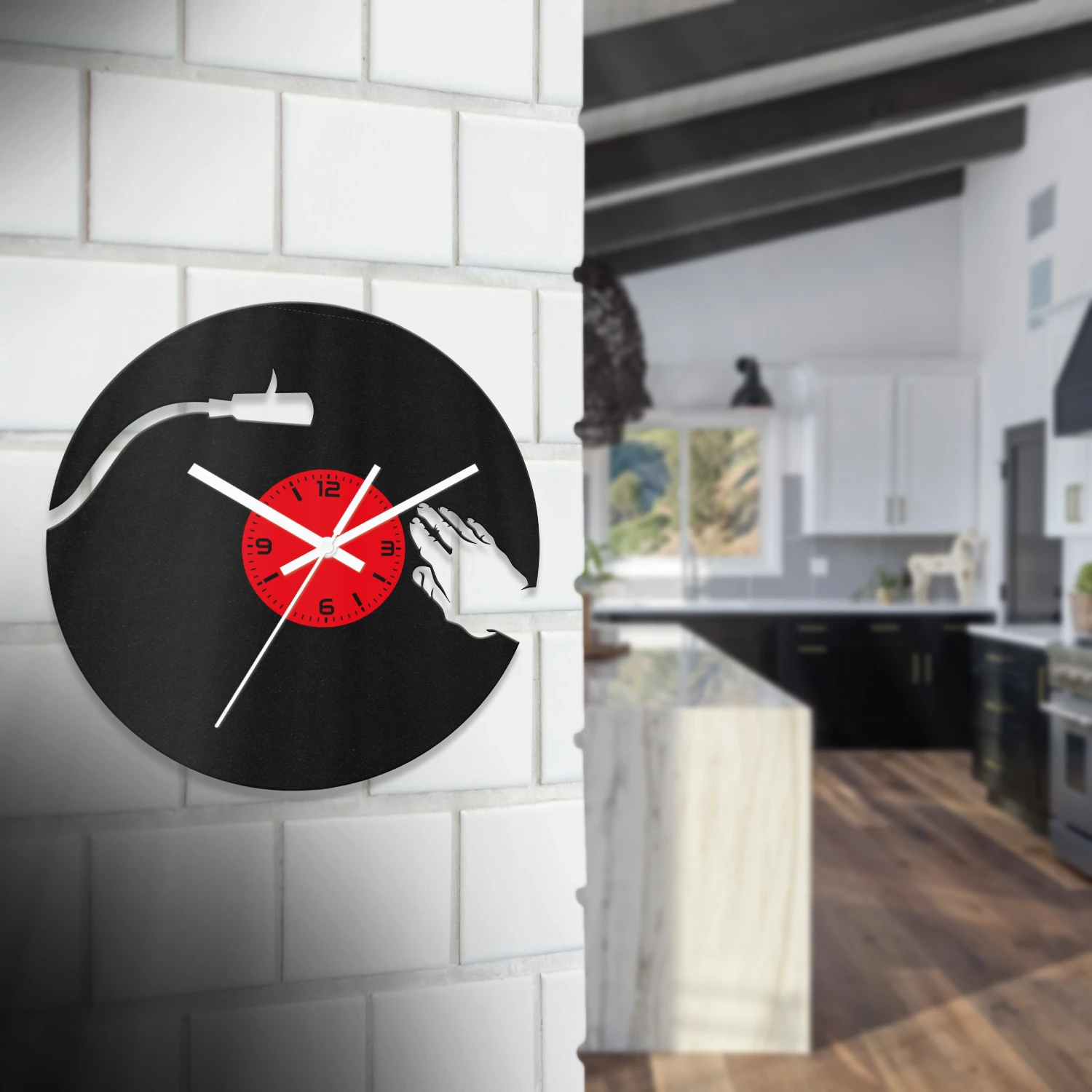 Lemezjátszós fa falióra