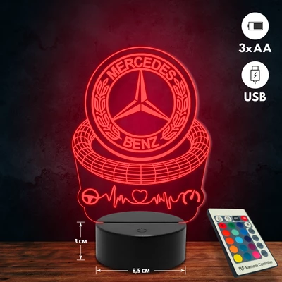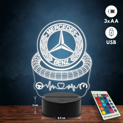 Mercedes-Benz logós 3D Led lámpa