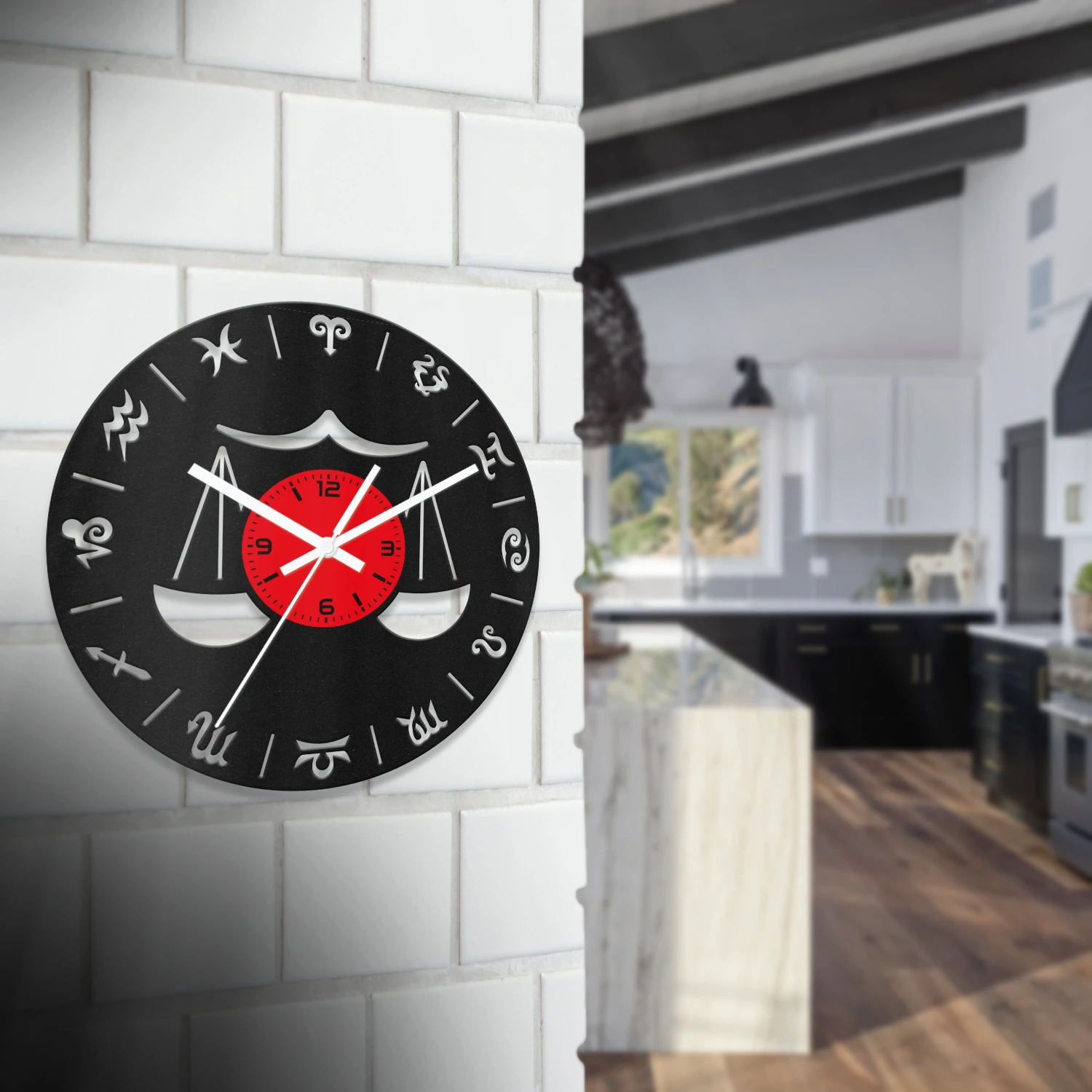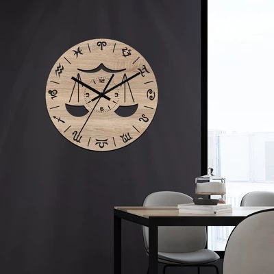 Mérleg - Csillagjegyes fa falióra