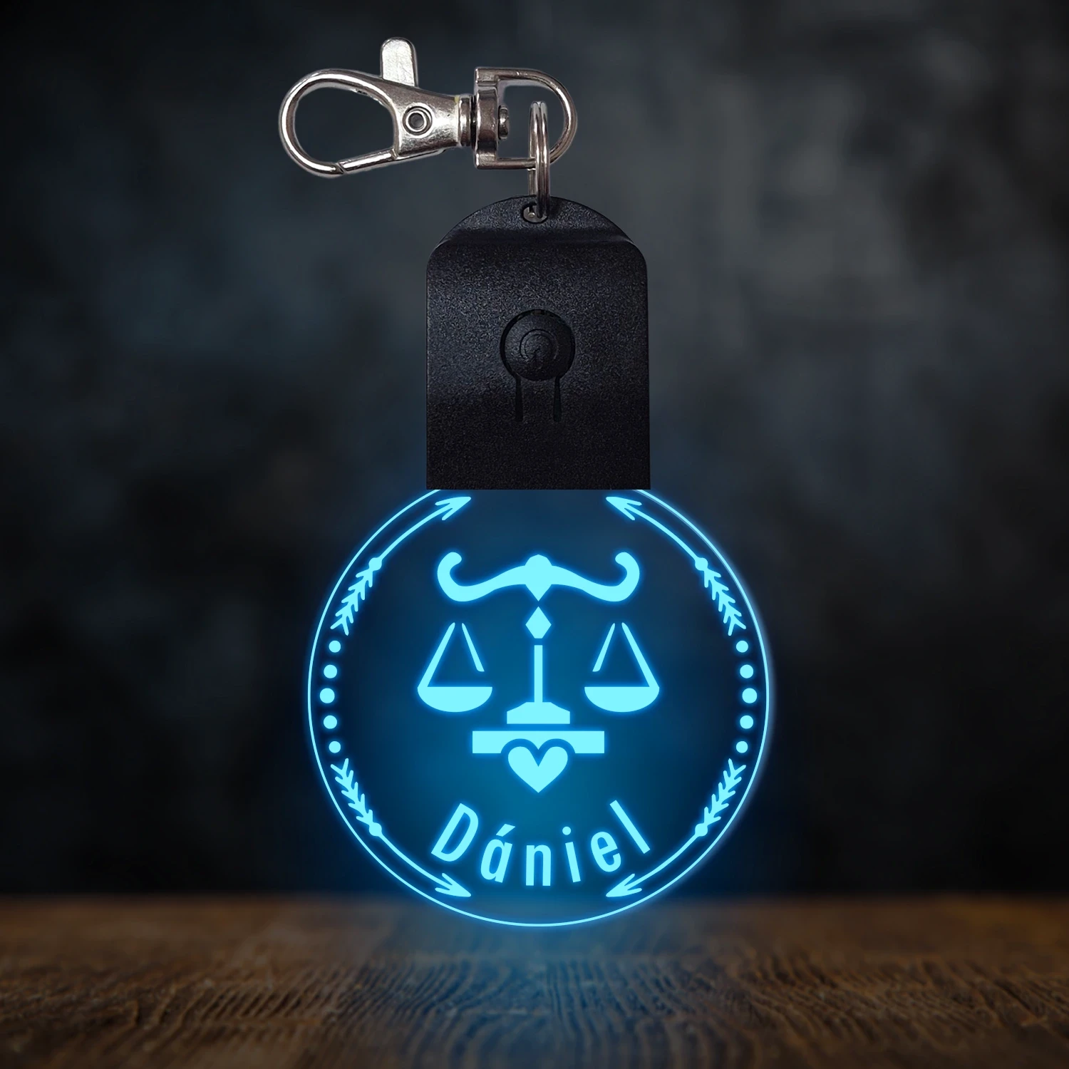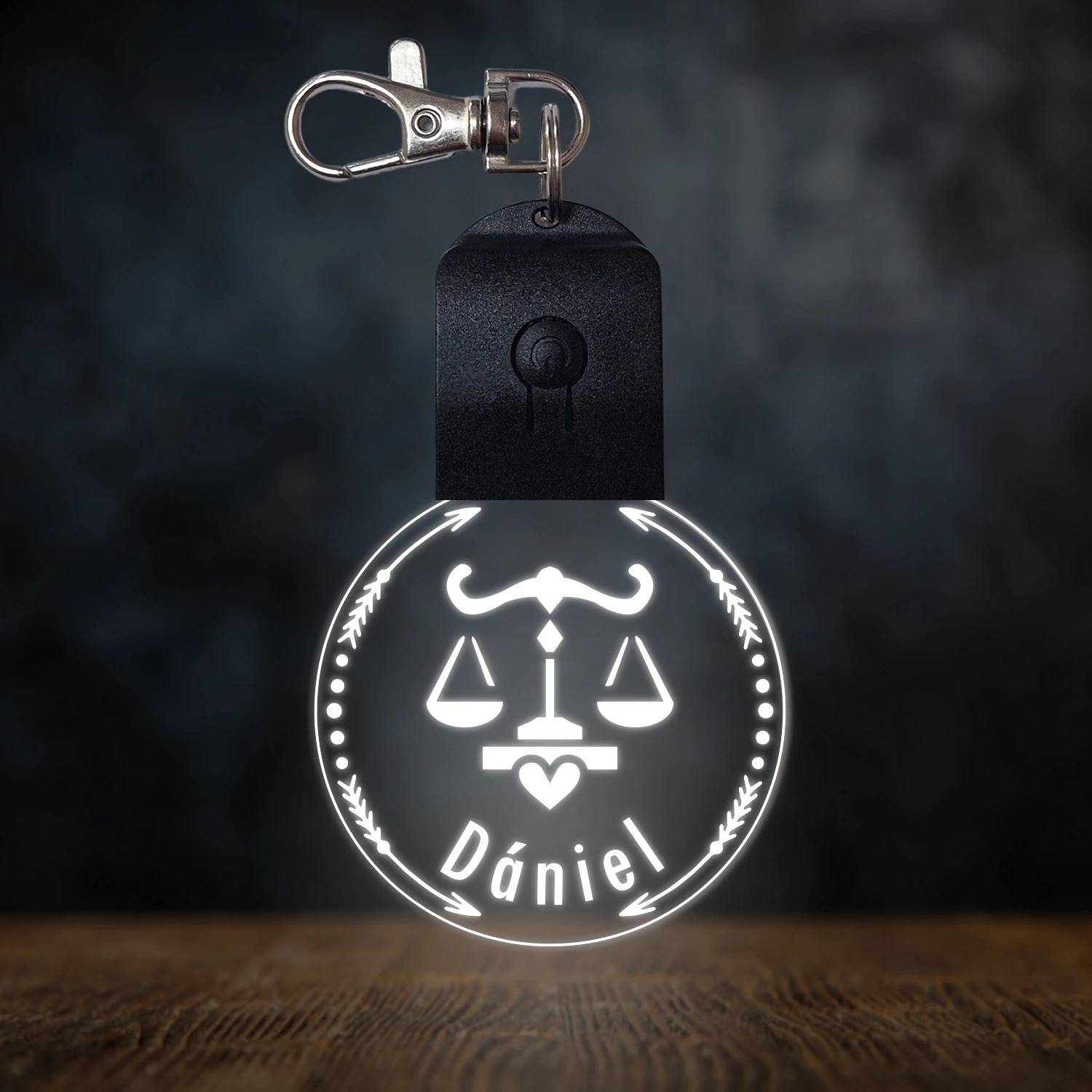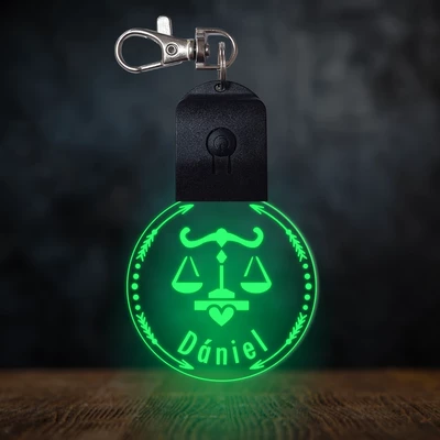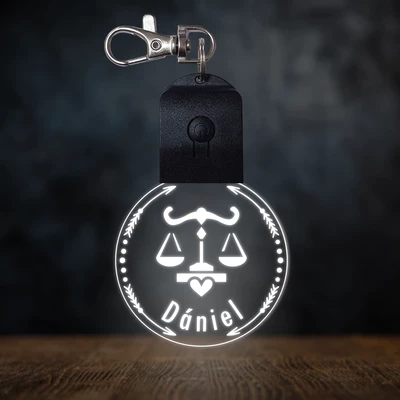 Mérleg csillagjegyes világító led kulcstartó - Egyedi felirattal