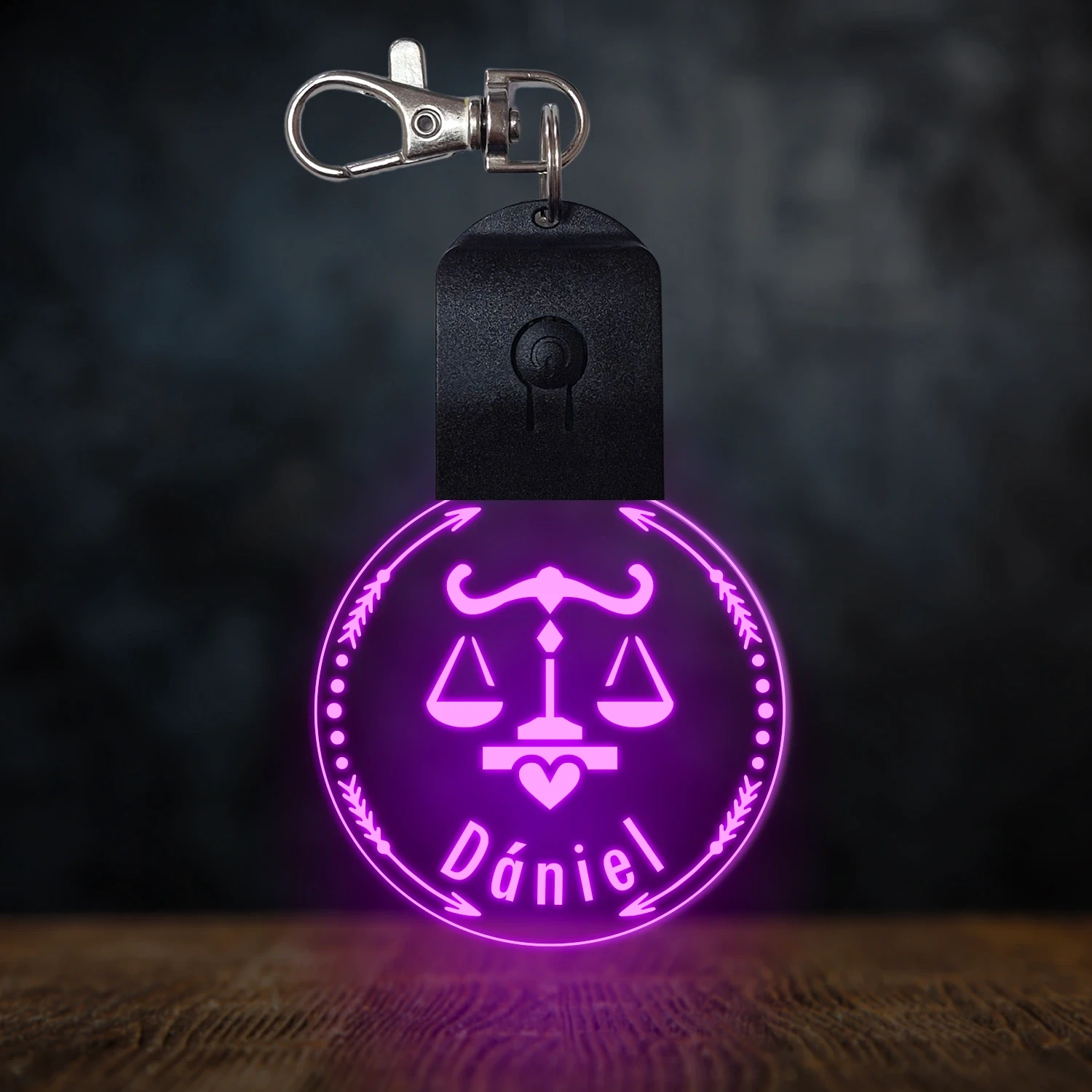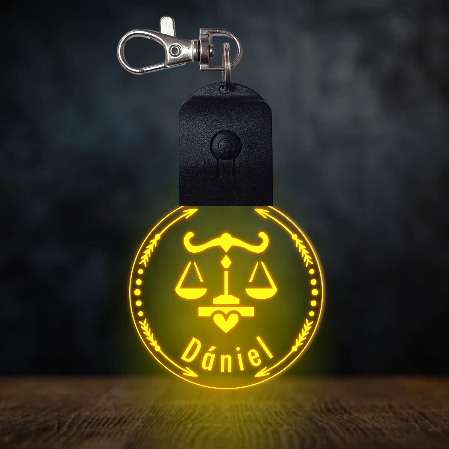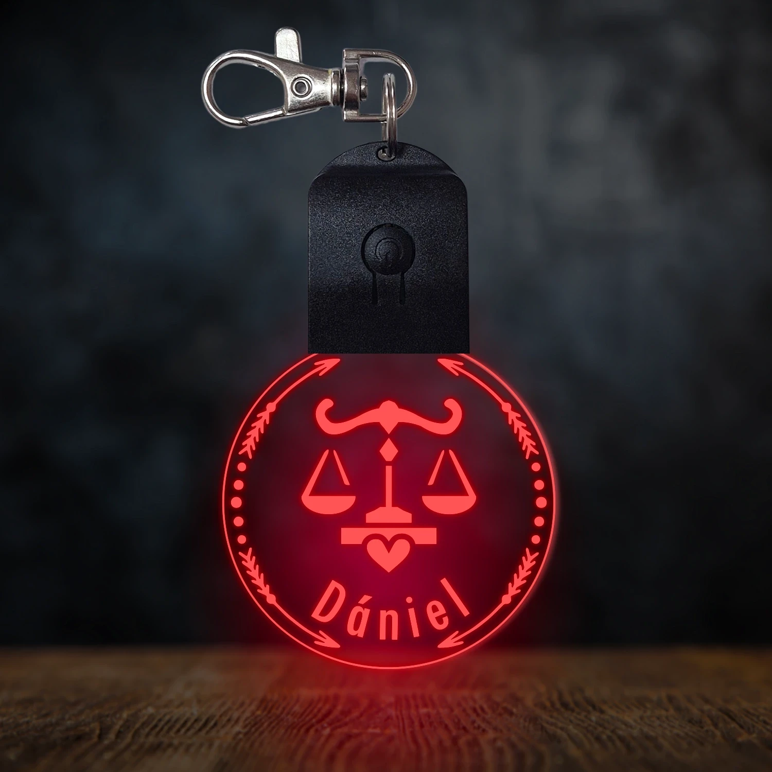 Mérleg csillagjegyes világító led kulcstartó - Egyedi felirattal