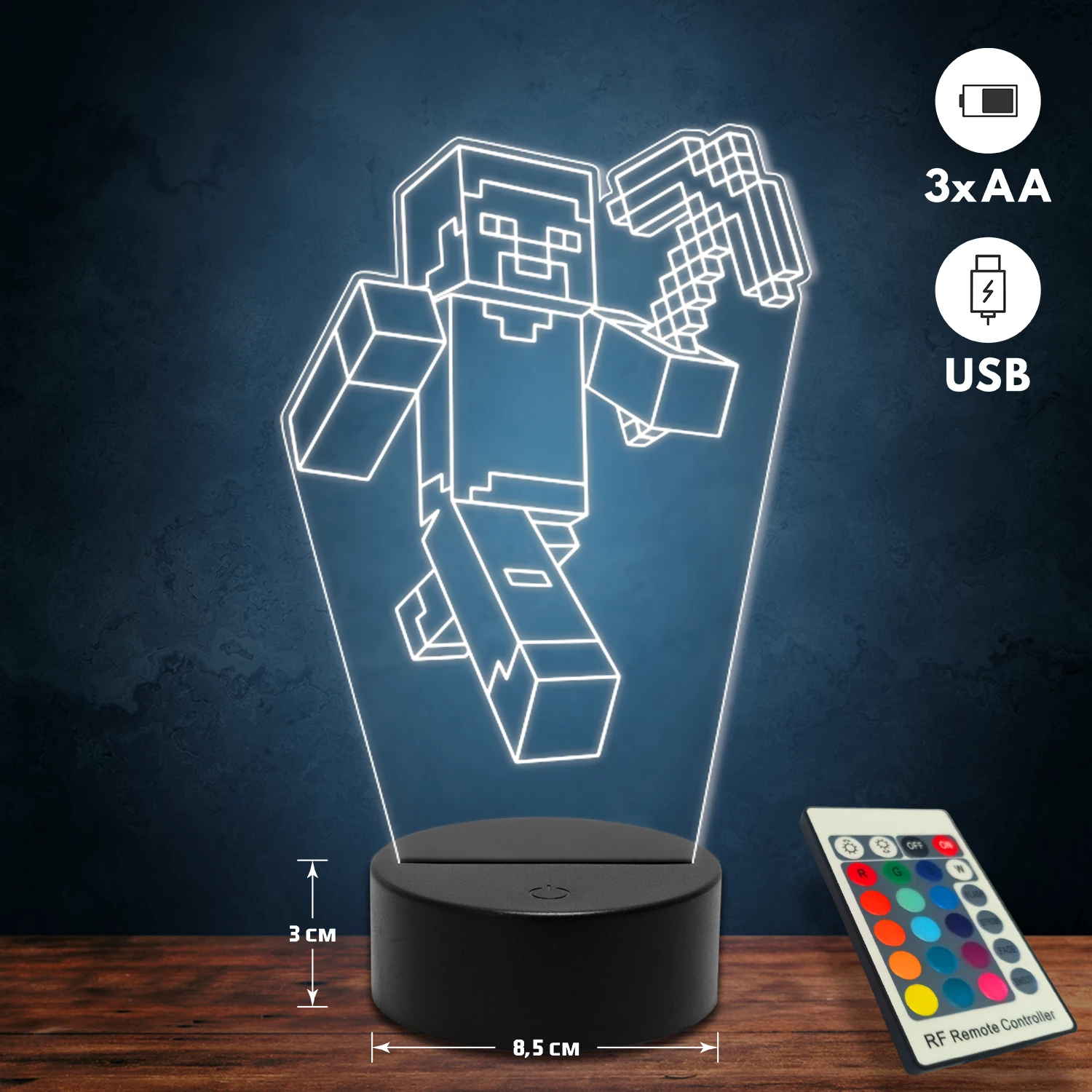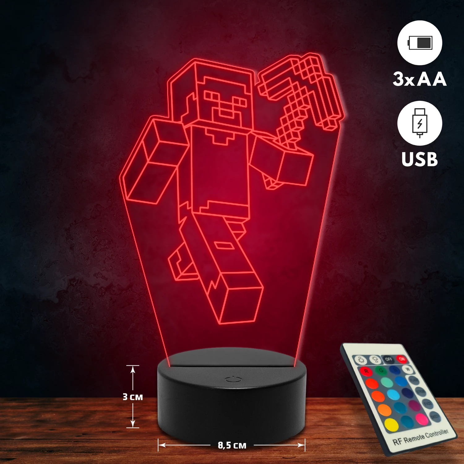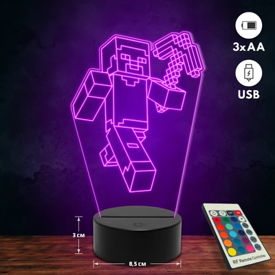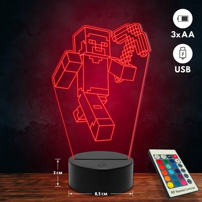 A 3D lámpa USB-kábellel is működtethető, amelyet egyszerűen csatlakoztathatsz számítógéphez, laptophoz vagy hálózati adapterhez. Emellett 3 darab AA elemmel is üzemeltethető (a csomag nem tartalmazza). A lámpa 16 különböző színben világíthat, emellett választhatóak a színváltási módok is: gyors villogás, lassú villogás vagy fokozatos színátmenet. A fény kellemesen lágy, a fényerőt pedig könnyedén állíthatod a mellékelt távirányító segítségével.