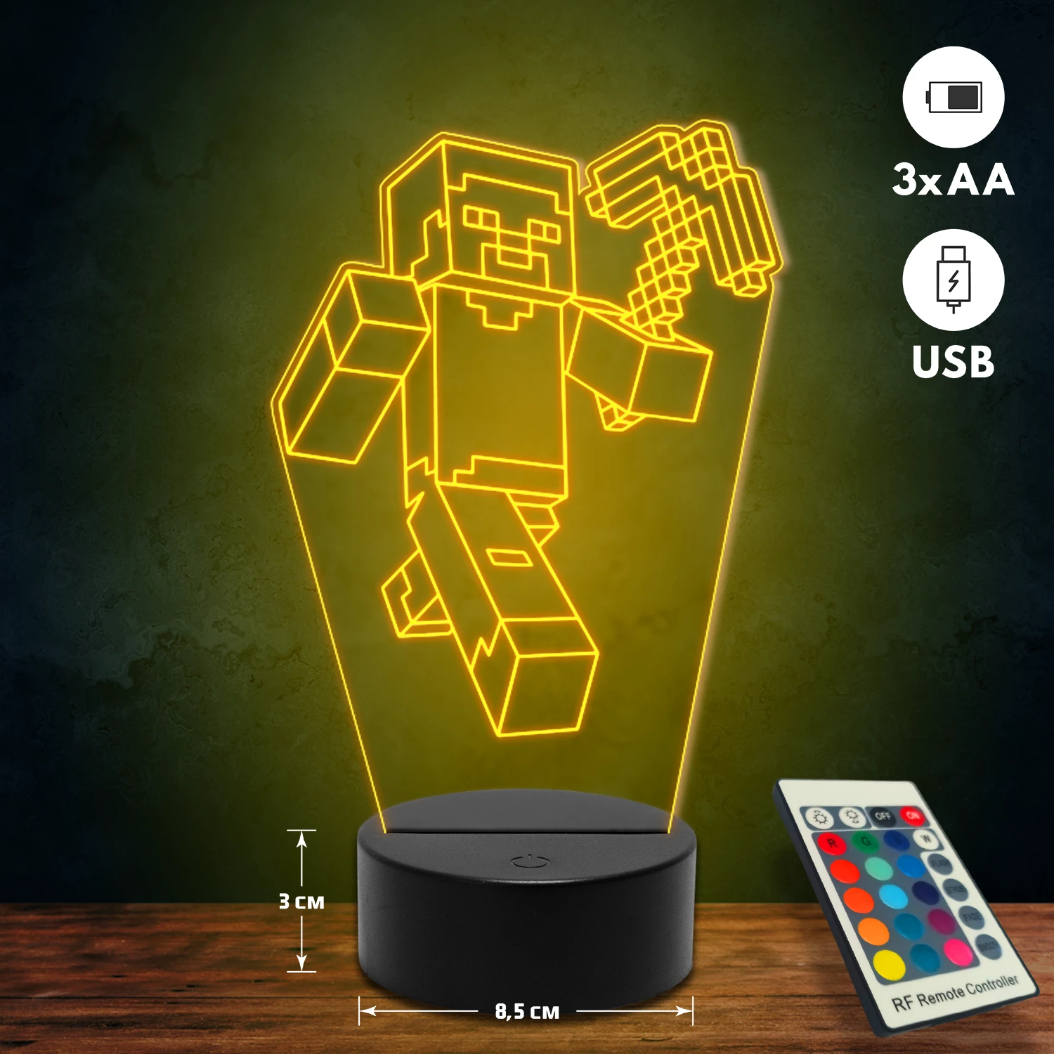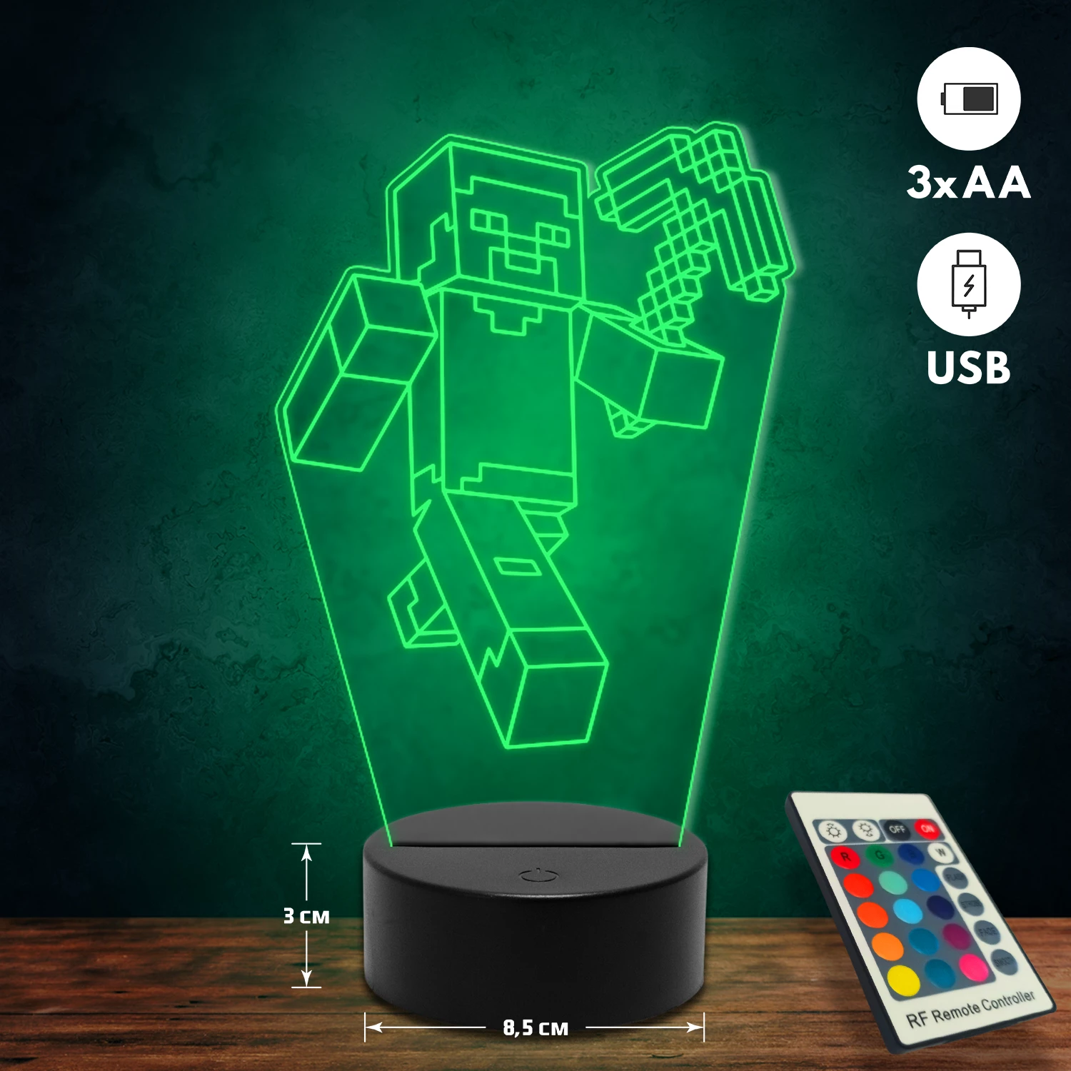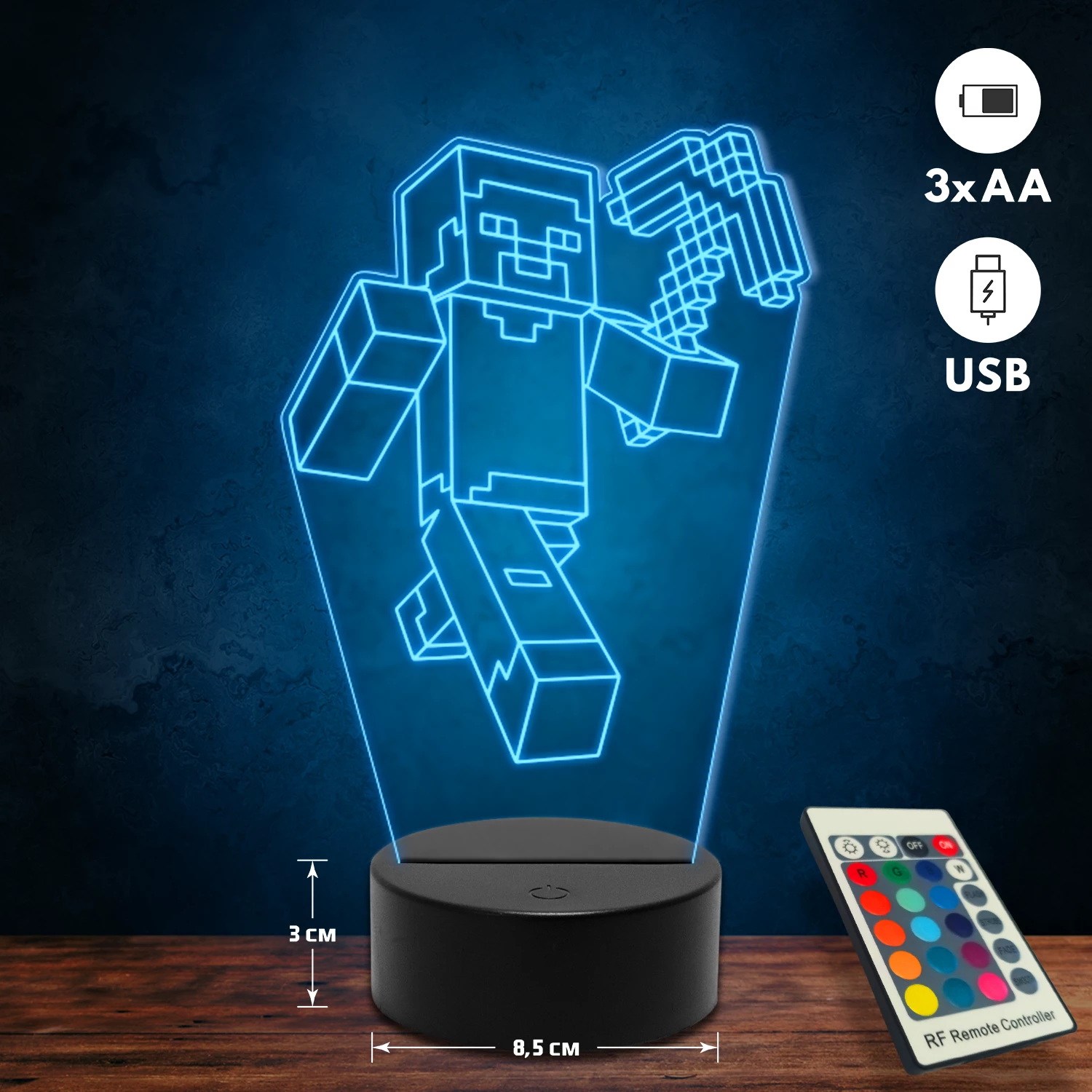 A 3D lámpa USB-kábellel is működtethető, amelyet egyszerűen csatlakoztathatsz számítógéphez, laptophoz vagy hálózati adapterhez. Emellett 3 darab AA elemmel is üzemeltethető (a csomag nem tartalmazza). A lámpa 16 különböző színben világíthat, emellett választhatóak a színváltási módok is: gyors villogás, lassú villogás vagy fokozatos színátmenet. A fény kellemesen lágy, a fényerőt pedig könnyedén állíthatod a mellékelt távirányító segítségével.