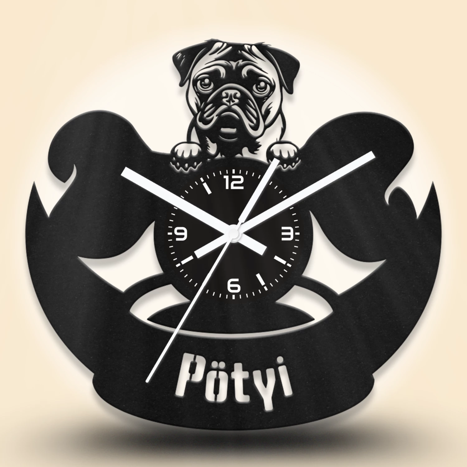 Bármelyik óránkra kérhetsz egyedi feliratot. A feliratokat – a minta alakzataihoz hasonlóan – kivágással készítjük el. A gyártáshoz stencil betűtípust használunk. Hosszabb vagy nagyobb méretű szövegeknél az alap mintán is végzünk kisebb módosításokat. A képek között találsz néhány példát egyedi feliratos óráinkról, amelyeket korábbi megrendelésekhez készítettünk.