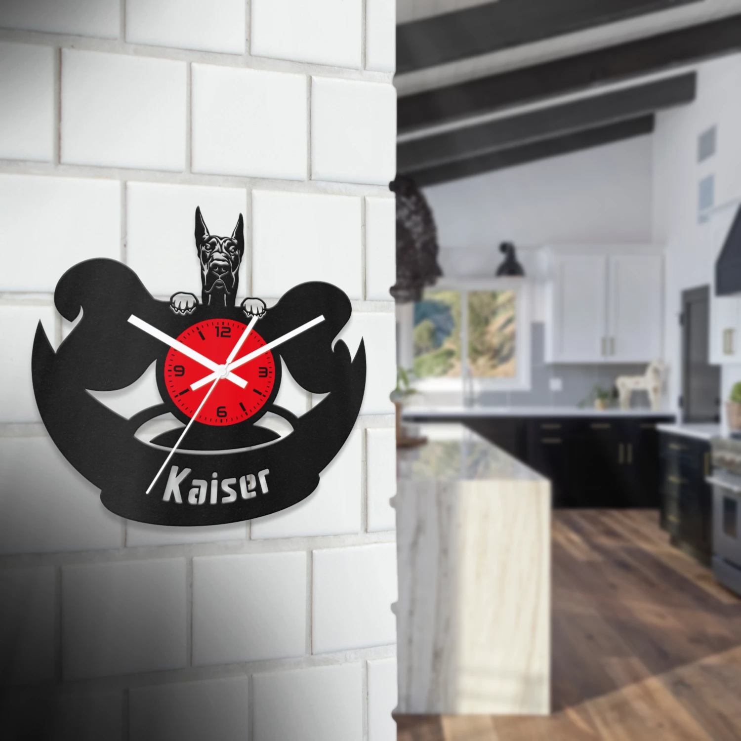 Német dog kutyafejes fa falióra