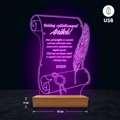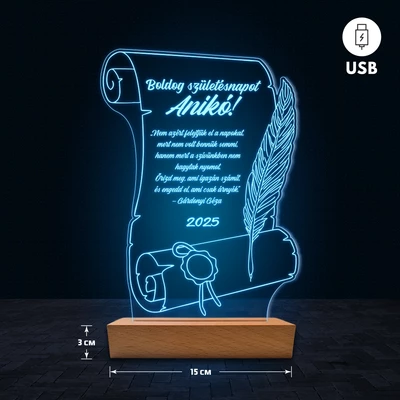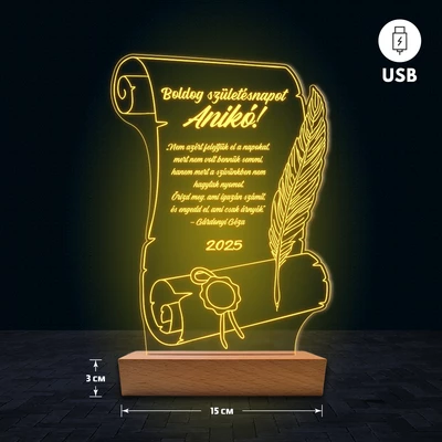 Pergamen egyedi feliratos 3D Led lámpa - Születésnap