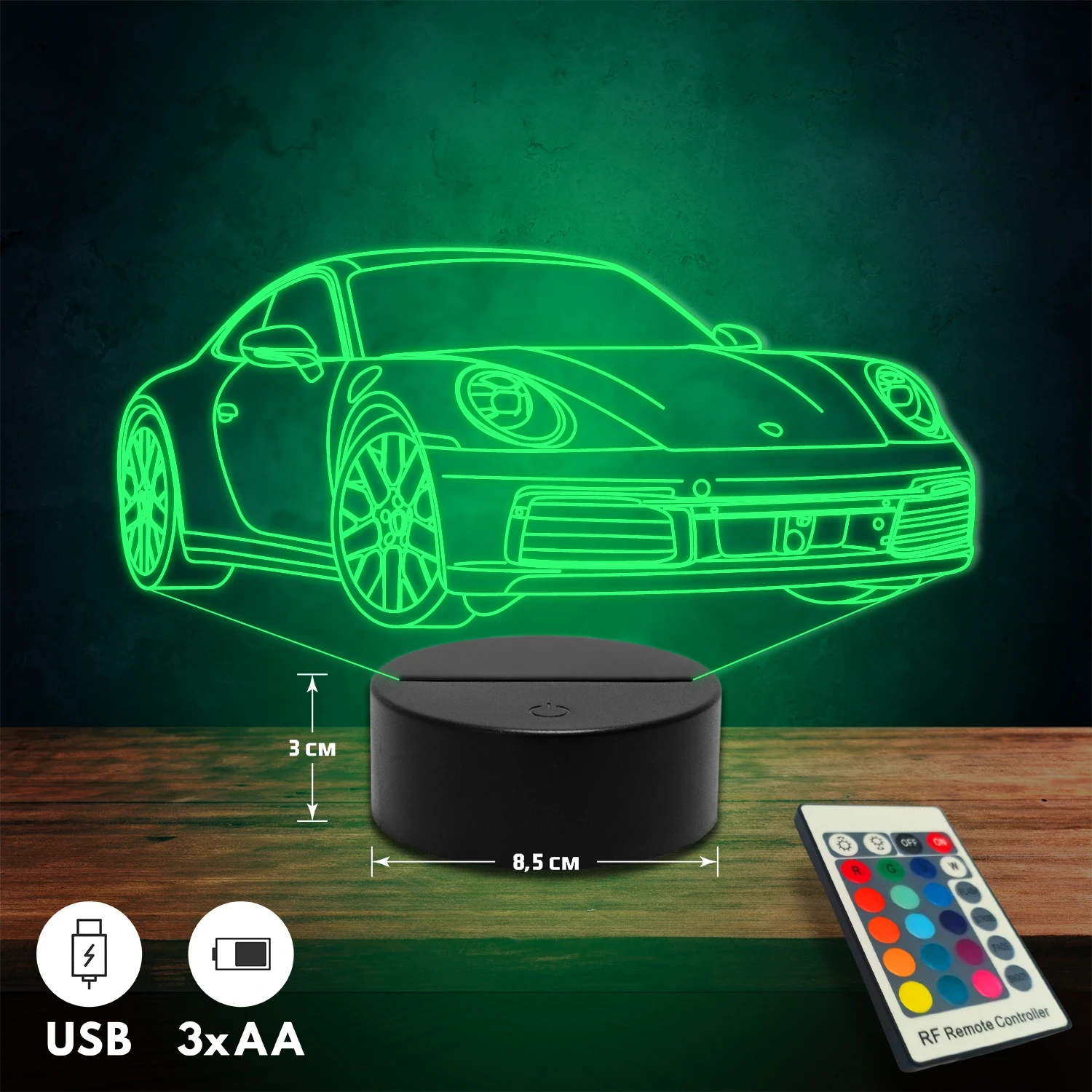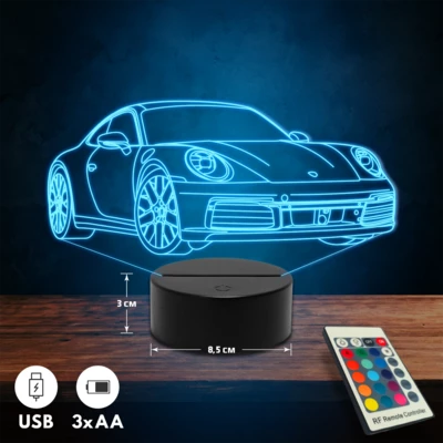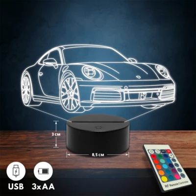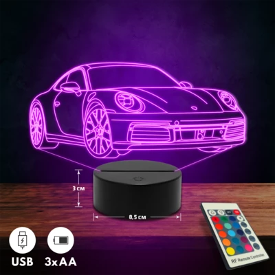 Porsche 911 Carrera autós 3D Led lámpa