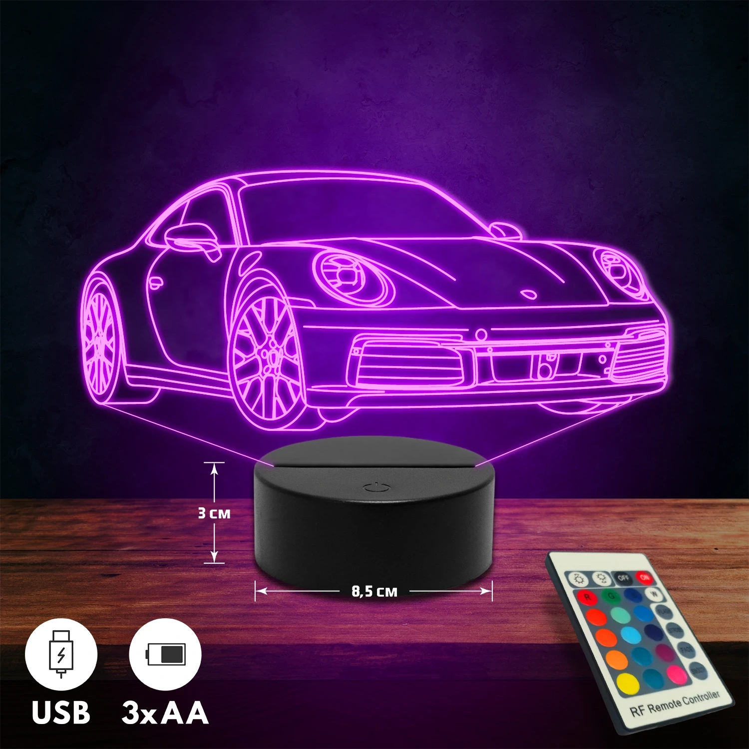 A 3D hatású led lámpa különlegessége, hogy tematikus mintákkal készül, és kérésedre egyedi felirattal (név, dátum, rövid üzenet) is kiegészíthető. Rendszám gravírozására is van lehetőség autós mintáinknál, így személyes és különleges ajándék, amely bármilyen alkalomra tökéletes választás. 🎁