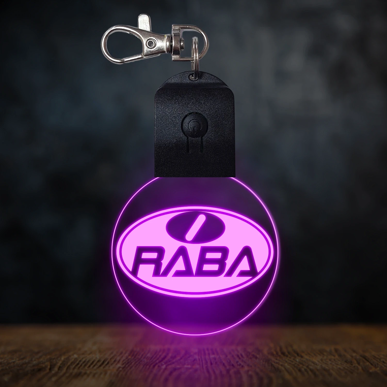 A kulcstartó különleges élvilágítással rendelkezik, amelynek hatására a bekapcsolt állapotban az akril lap színe megváltozik. Alapvetően az akril átlátszó, azonban amikor bekapcsoljuk, a gravírozott részek színesen ragyognak. Kikapcsolt állapotban az átlátszó akrilon, a gravírozott részek fehér színnel láthatóak, így jól kivehetőek maradnak. 🎁