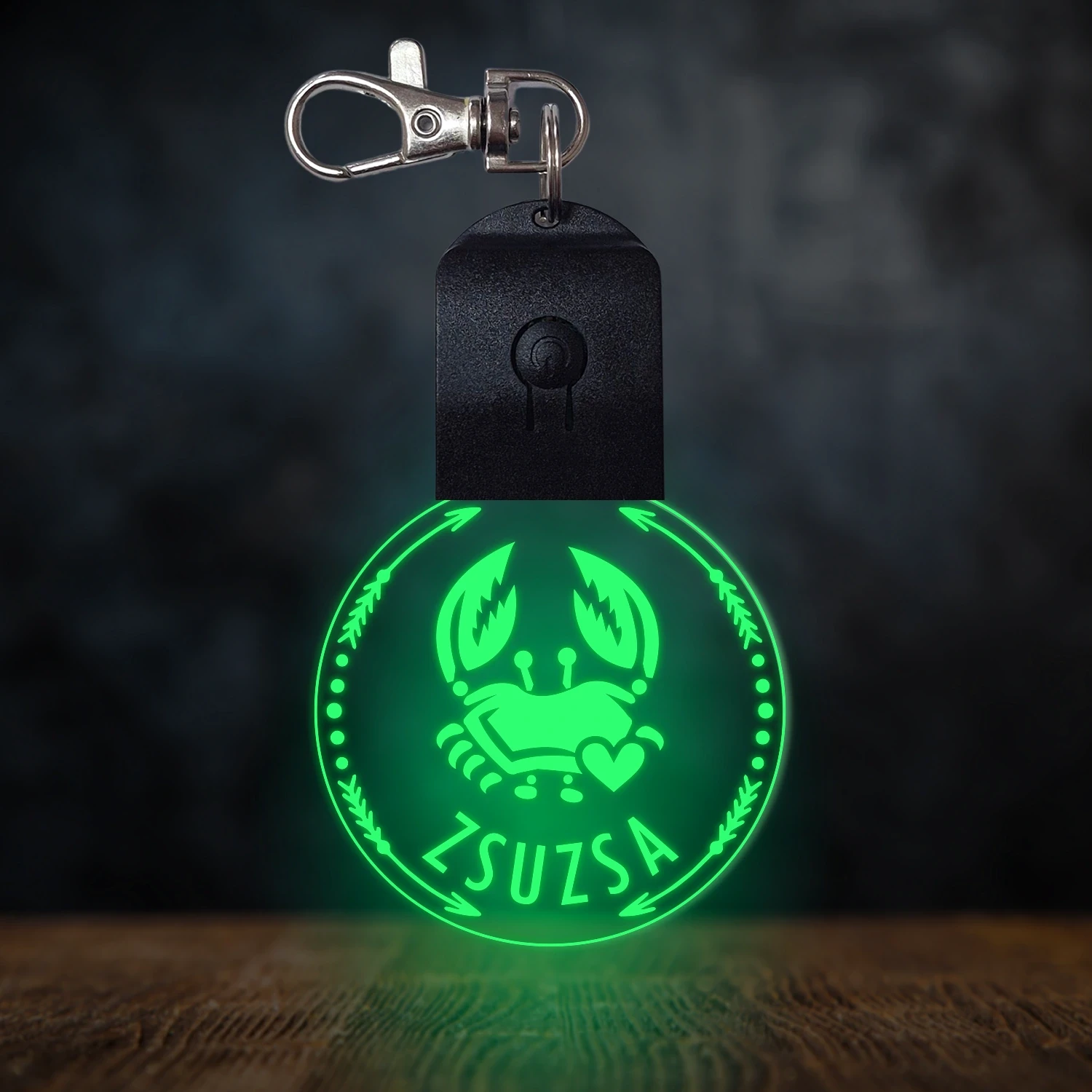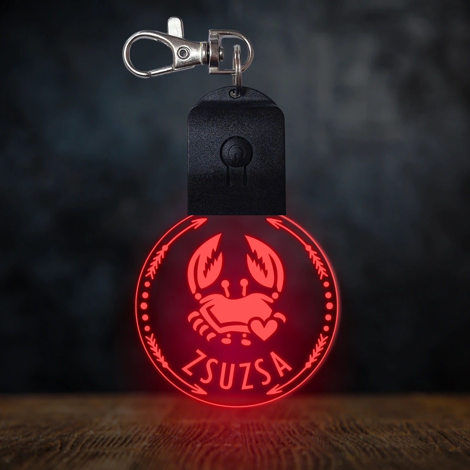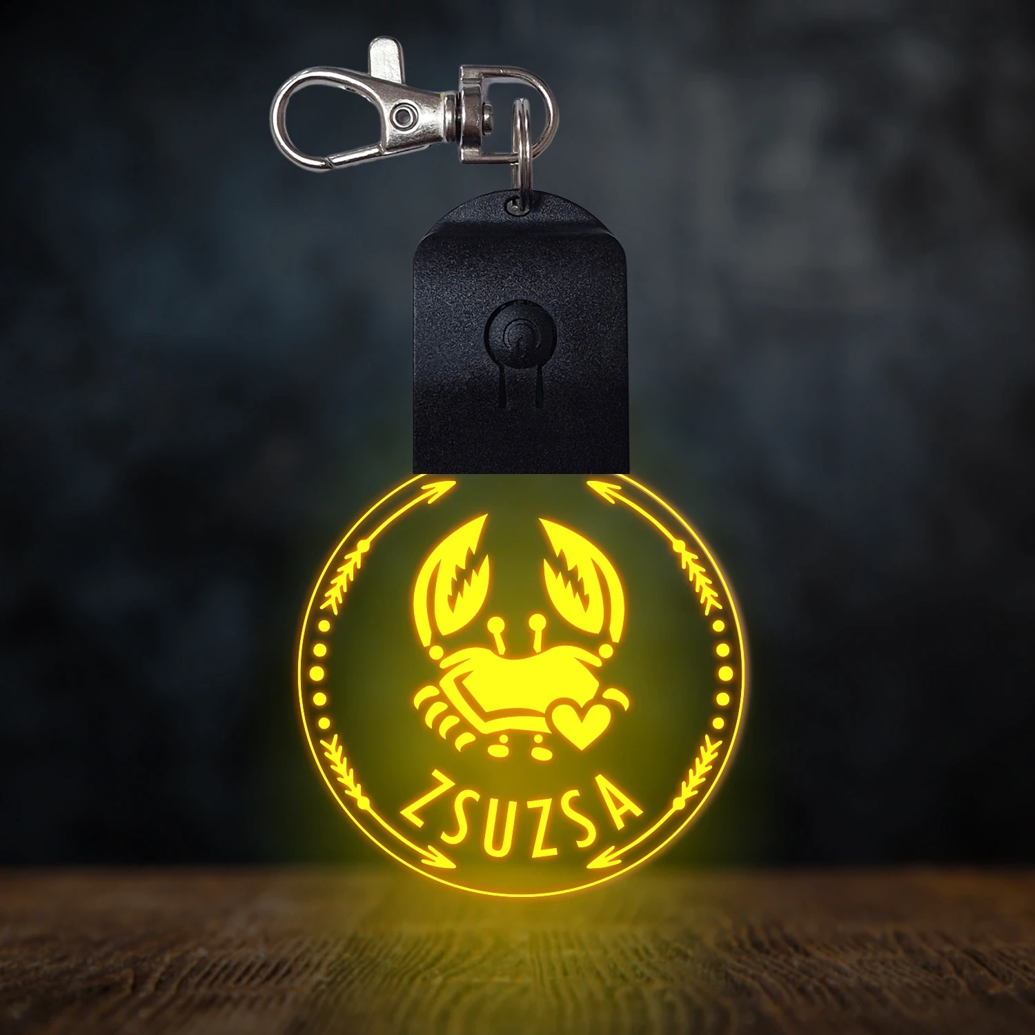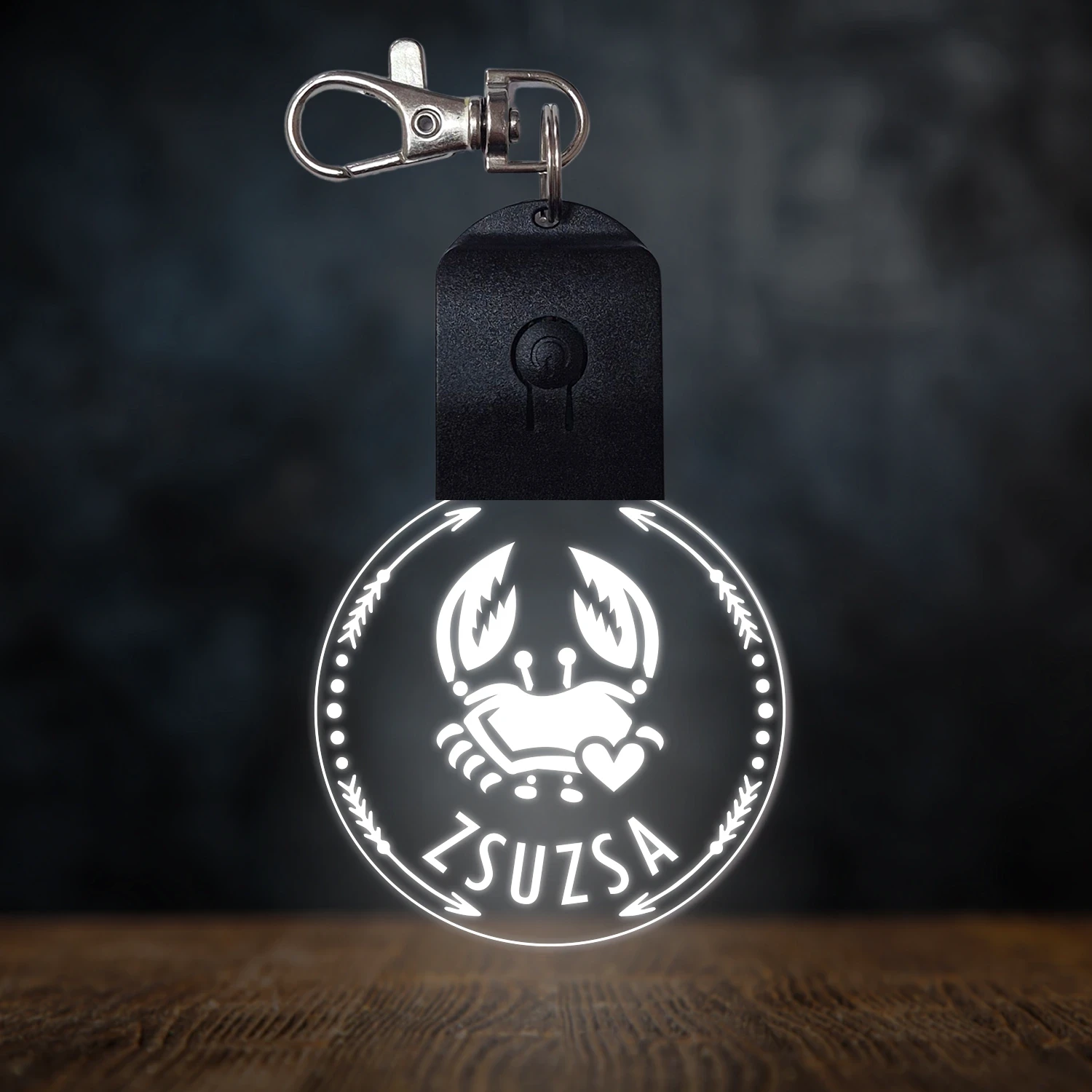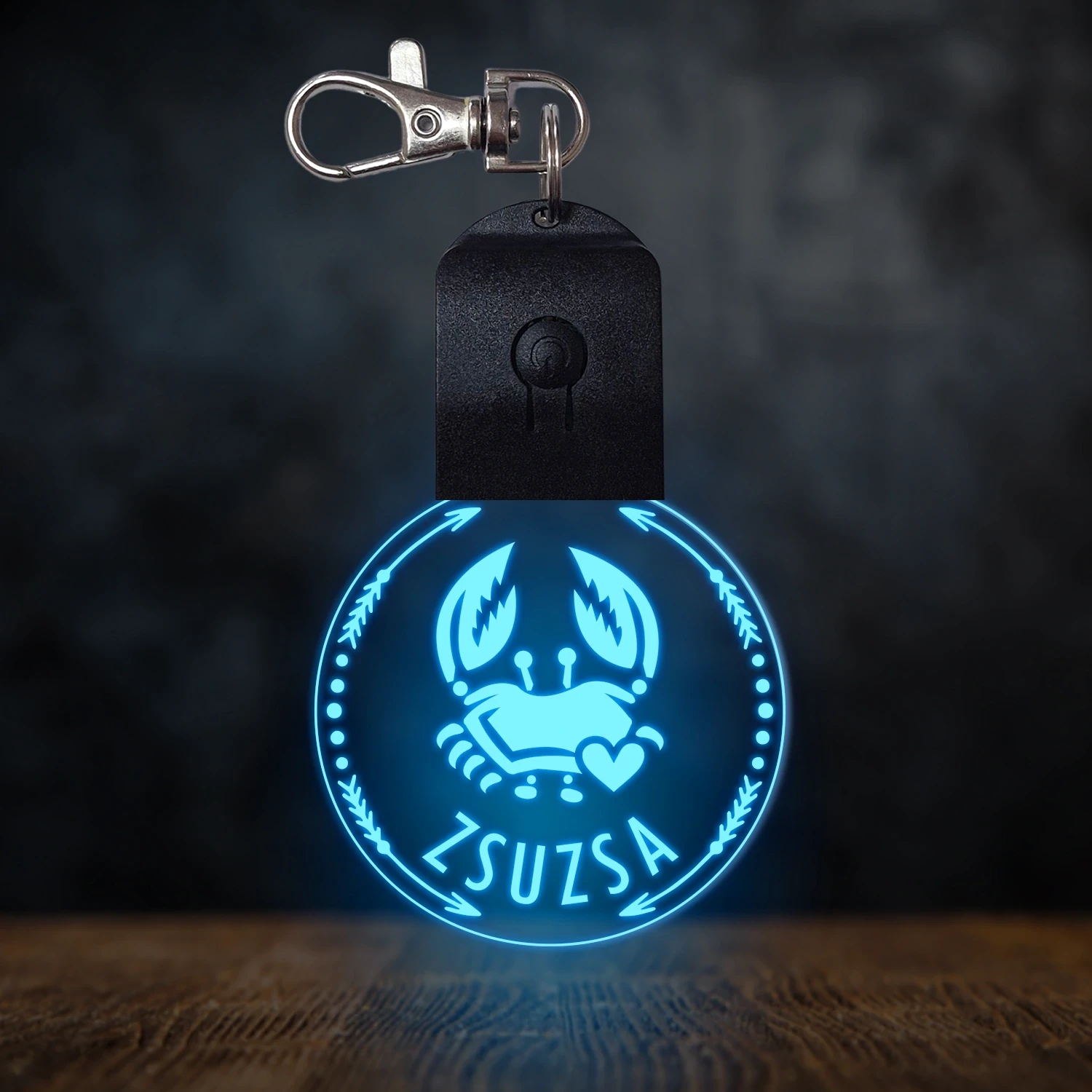 Rák csillagjegyes világító led kulcstartó - Egyedi felirattal