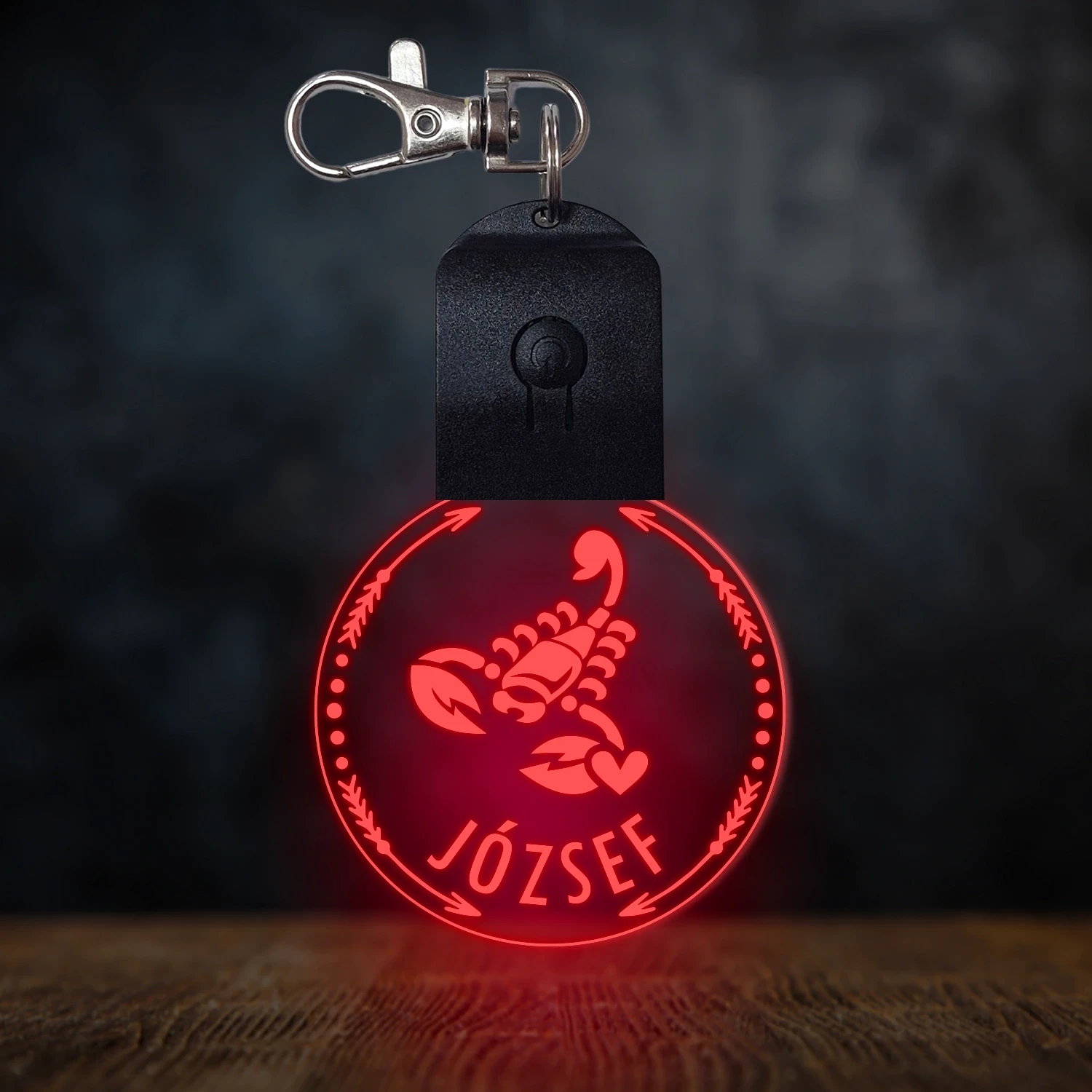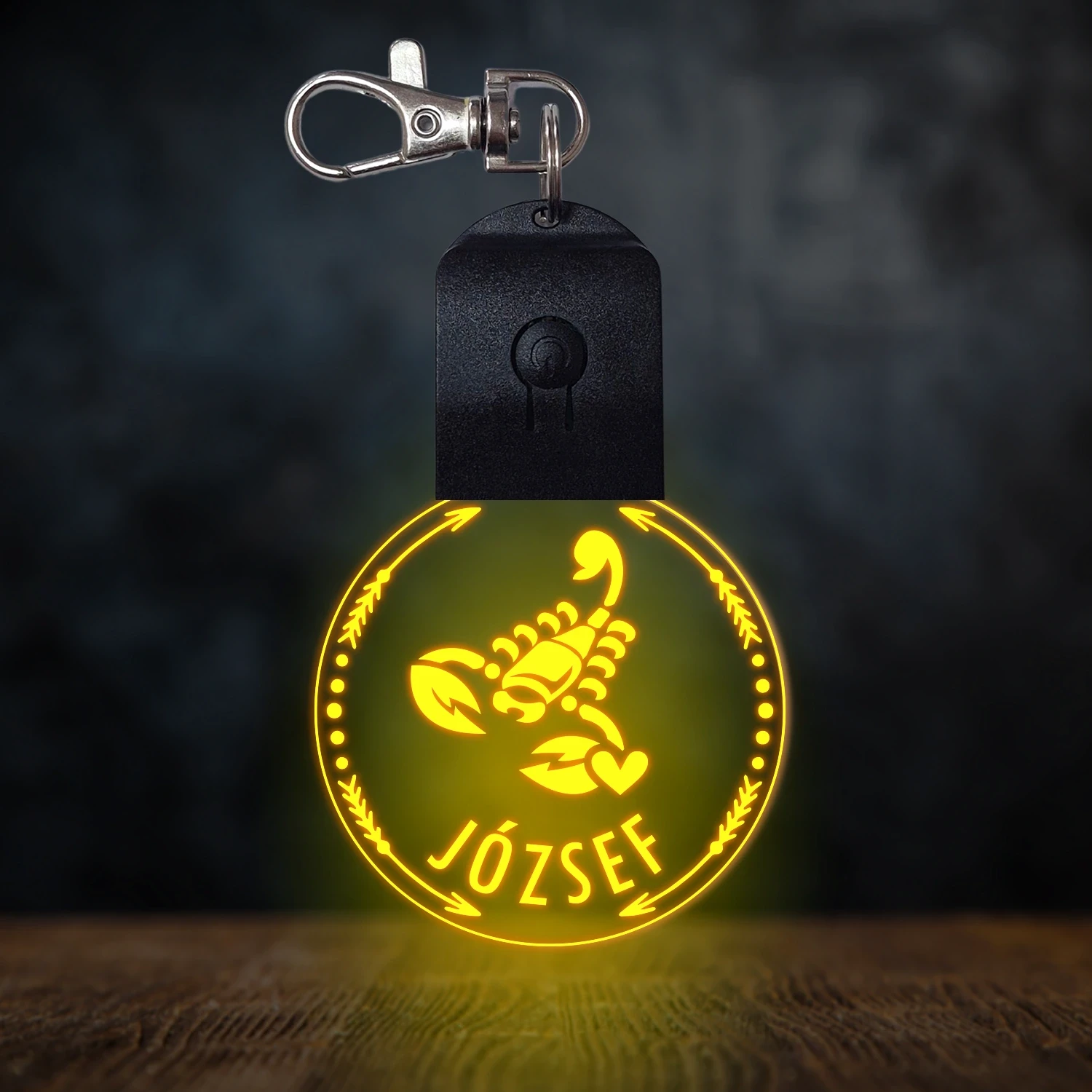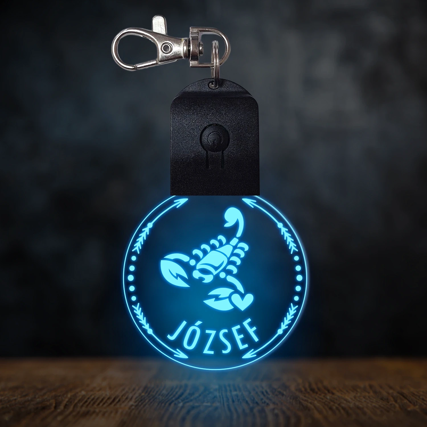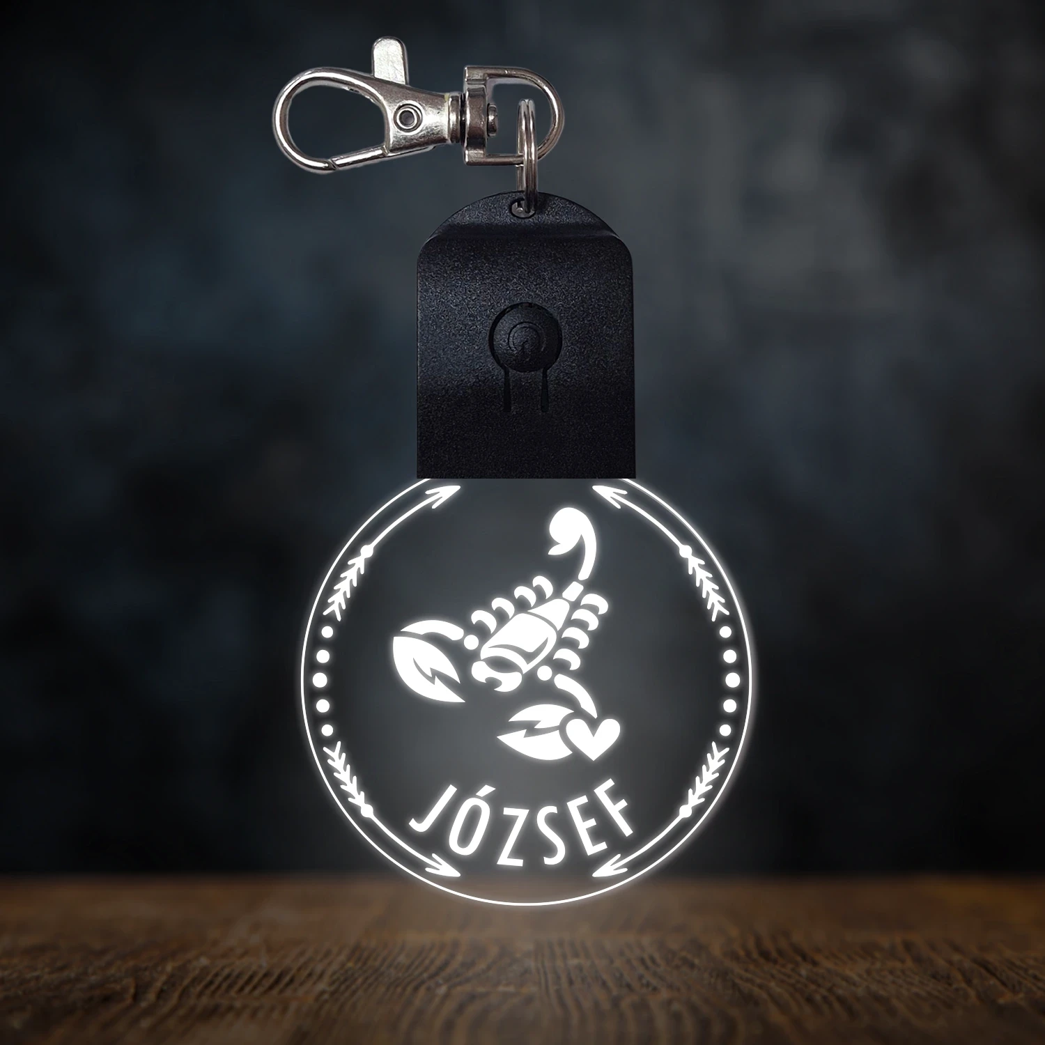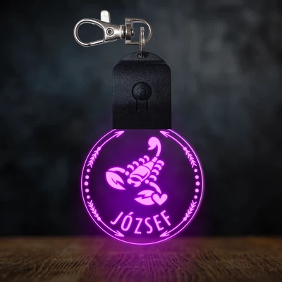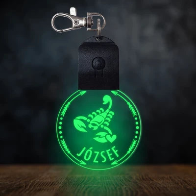 Skorpió csillagjegyes világító led kulcstartó - Egyedi felirattal