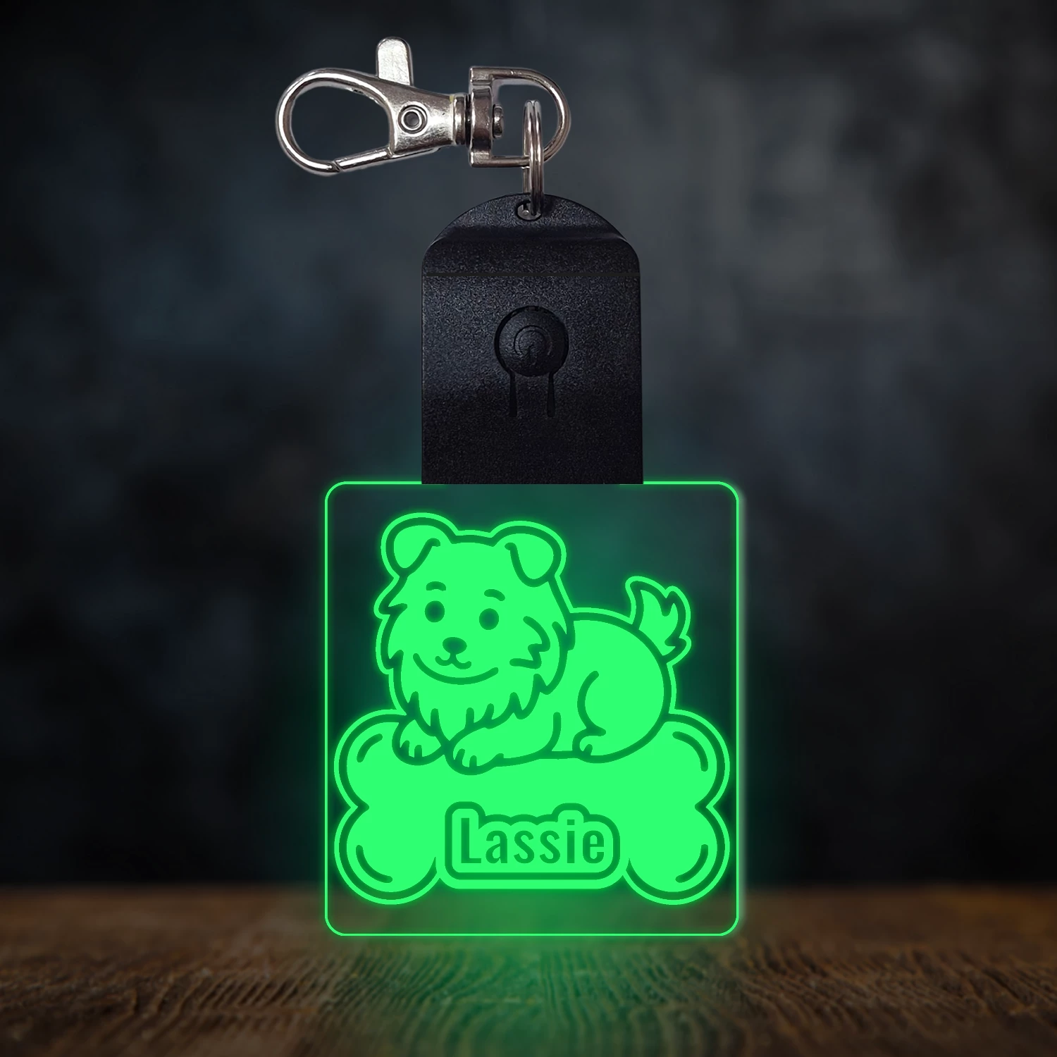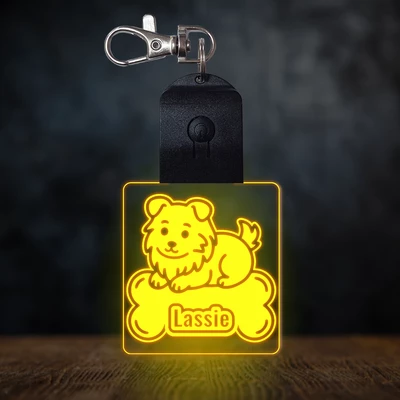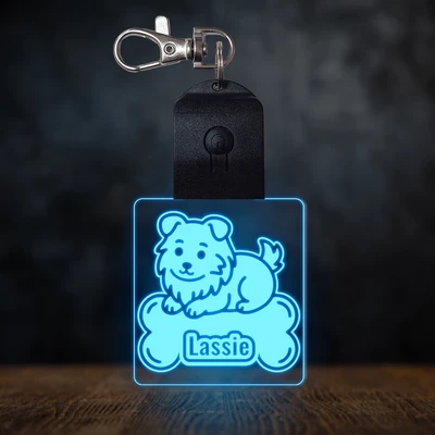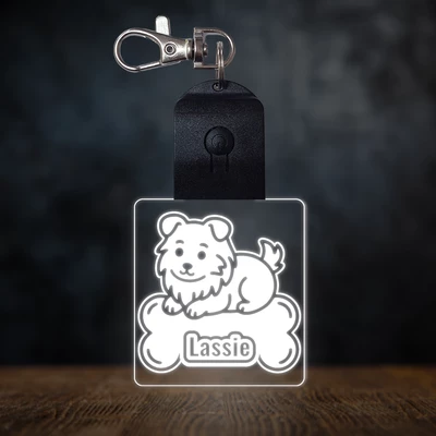 Skót juhász világító led kulcstartó - Egyedi felirattal