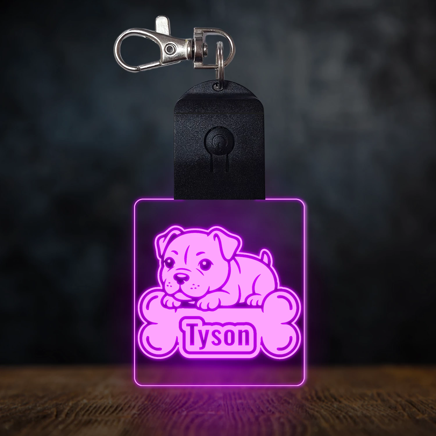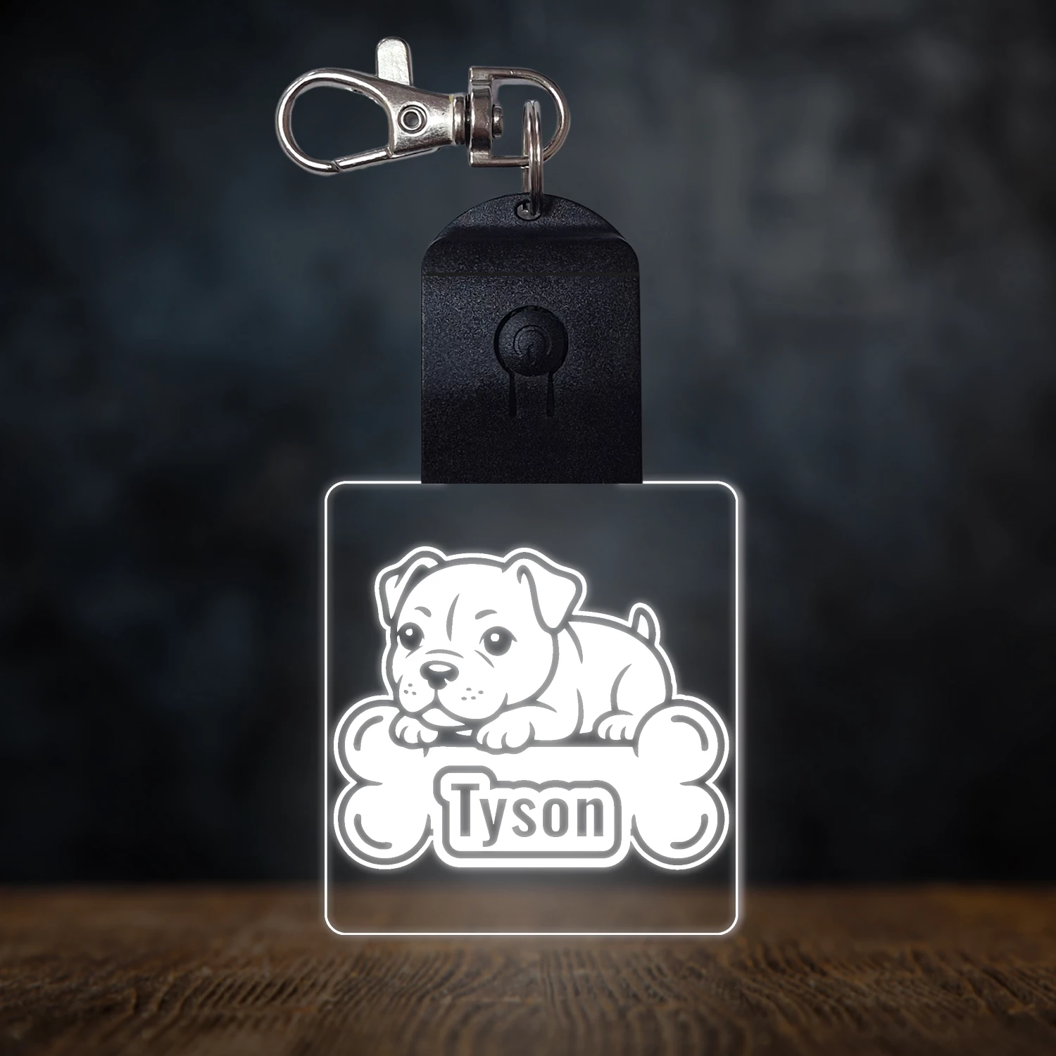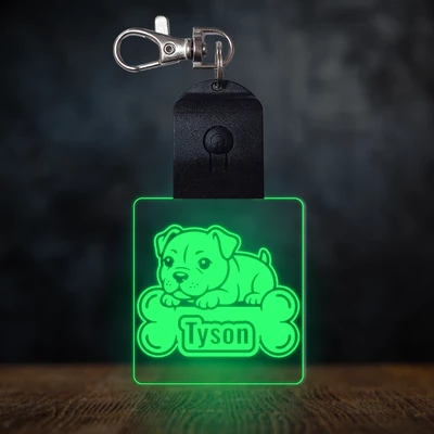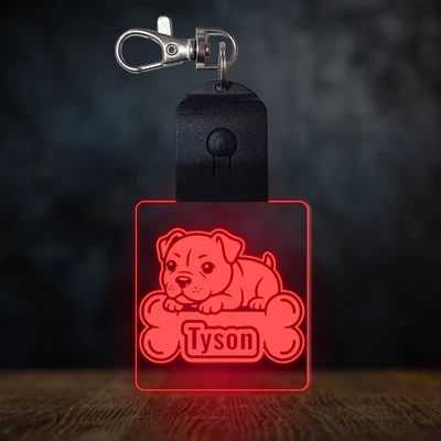Staffordshire terrier világító led kulcstartó - Egyedi felirattal
