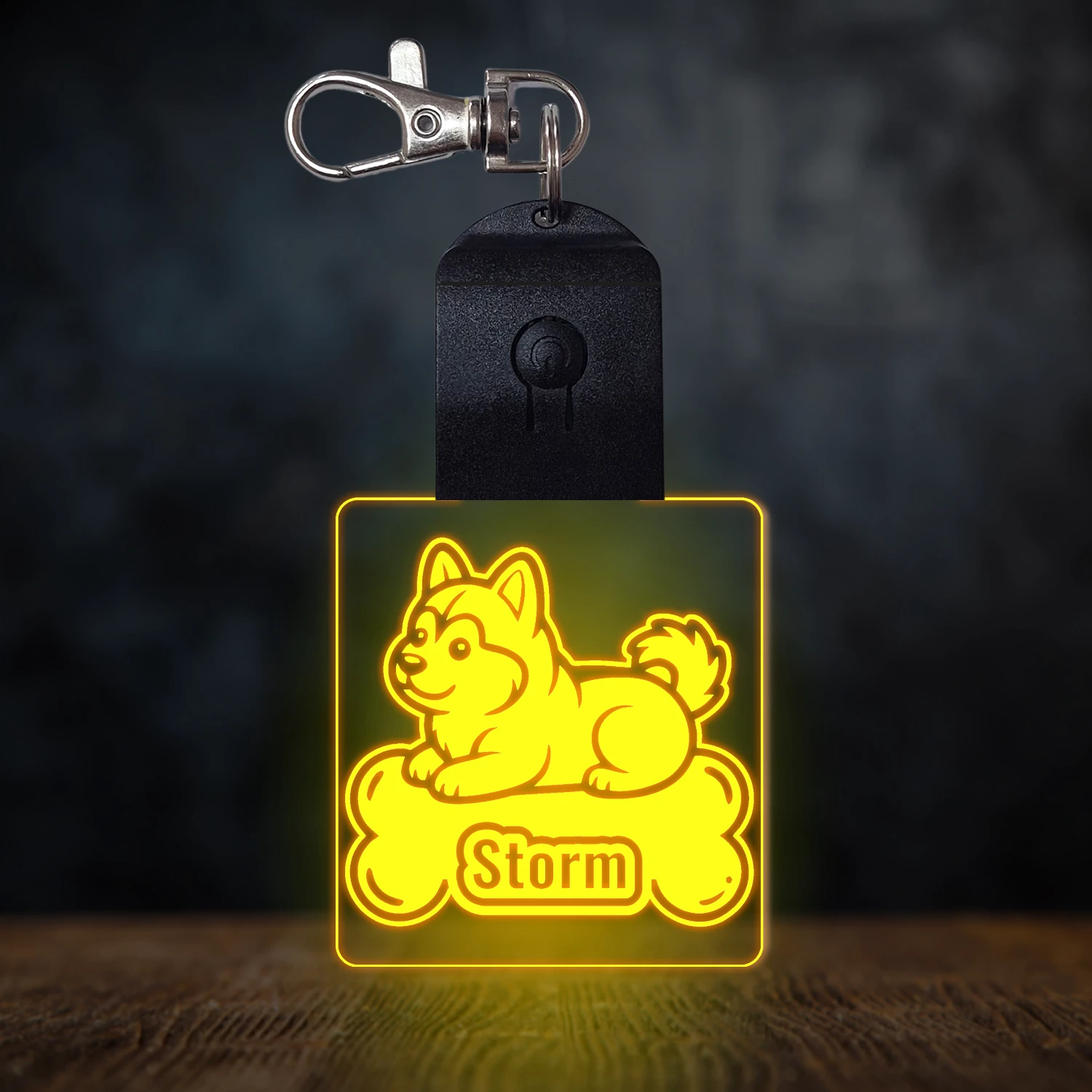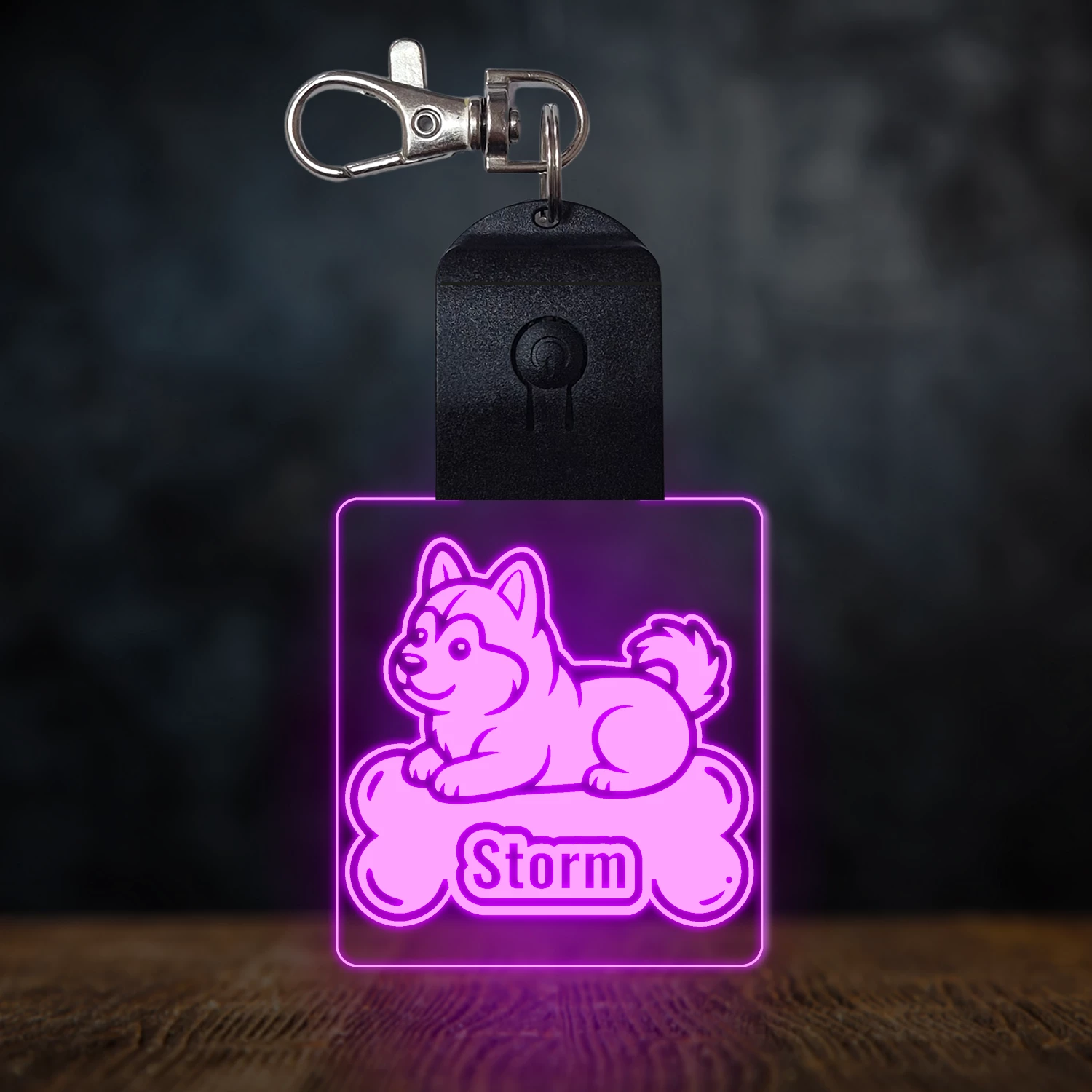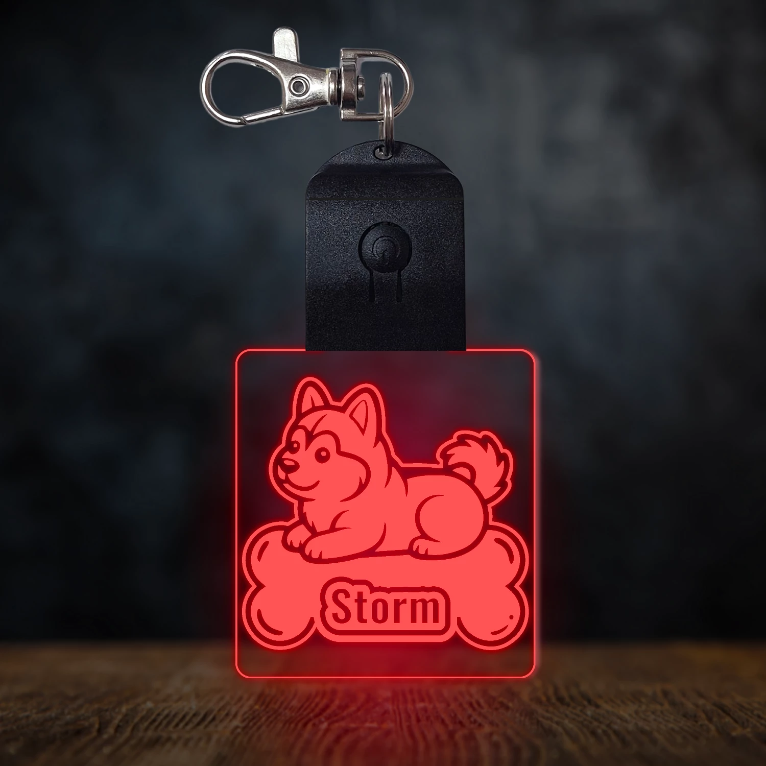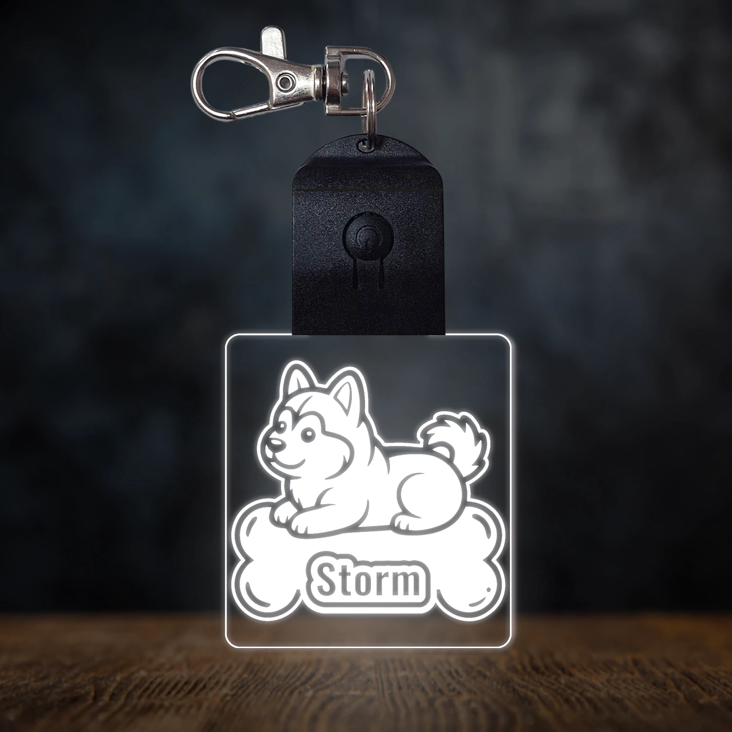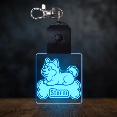 Szibériai husky világító led kulcstartó - Egyedi felirattal