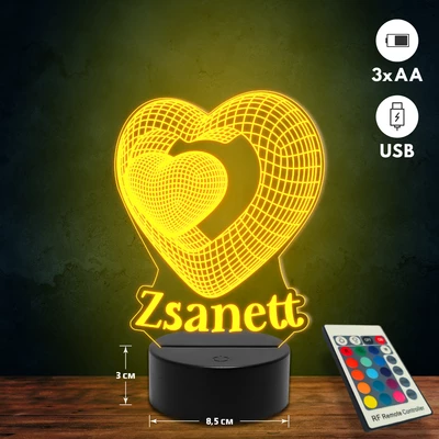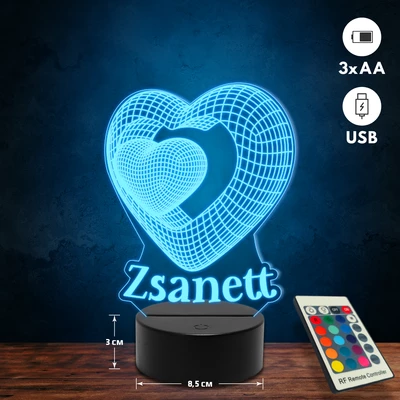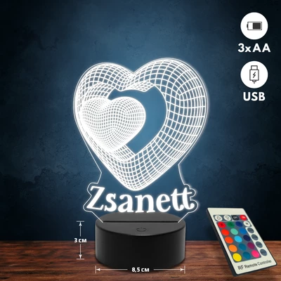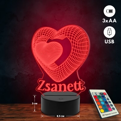 Térbeli szíves romantikus 3D Led lámpa