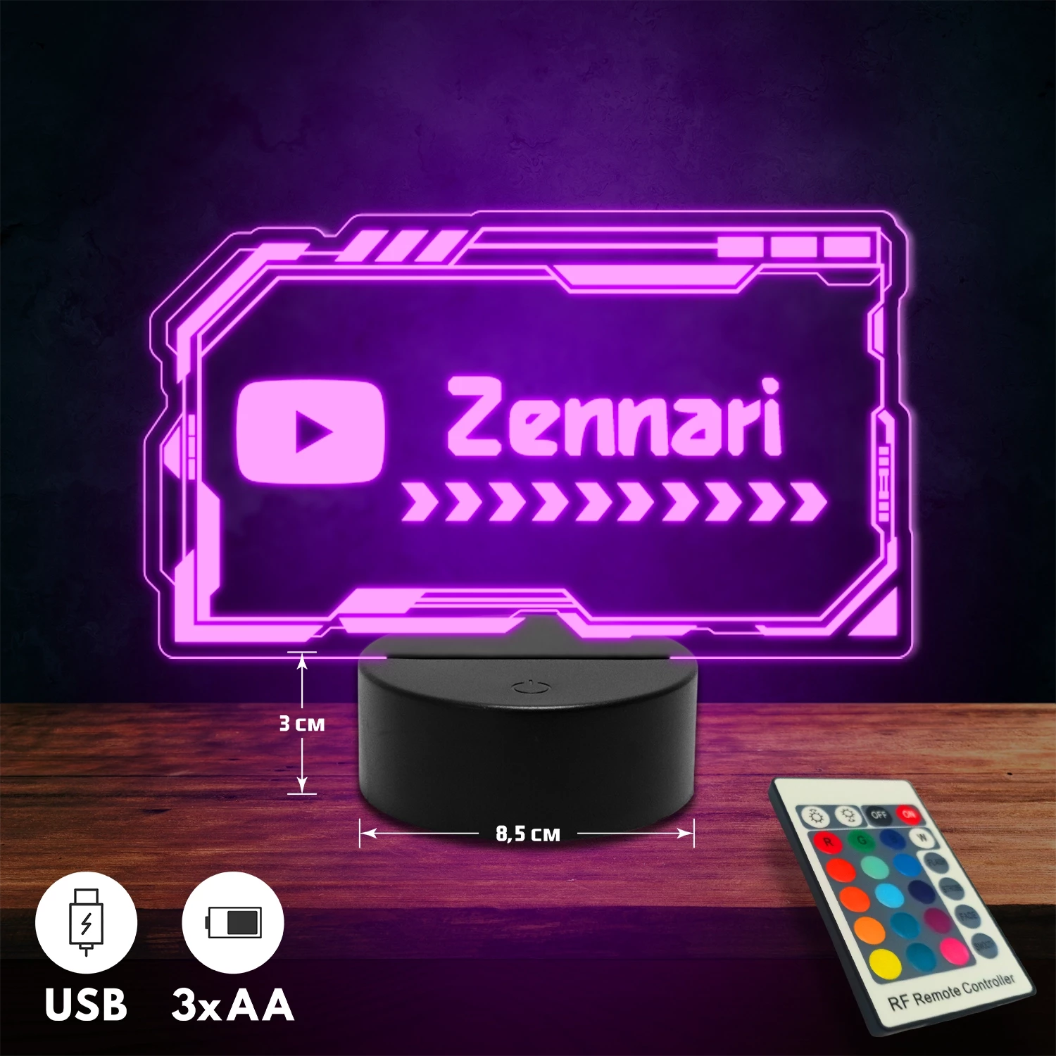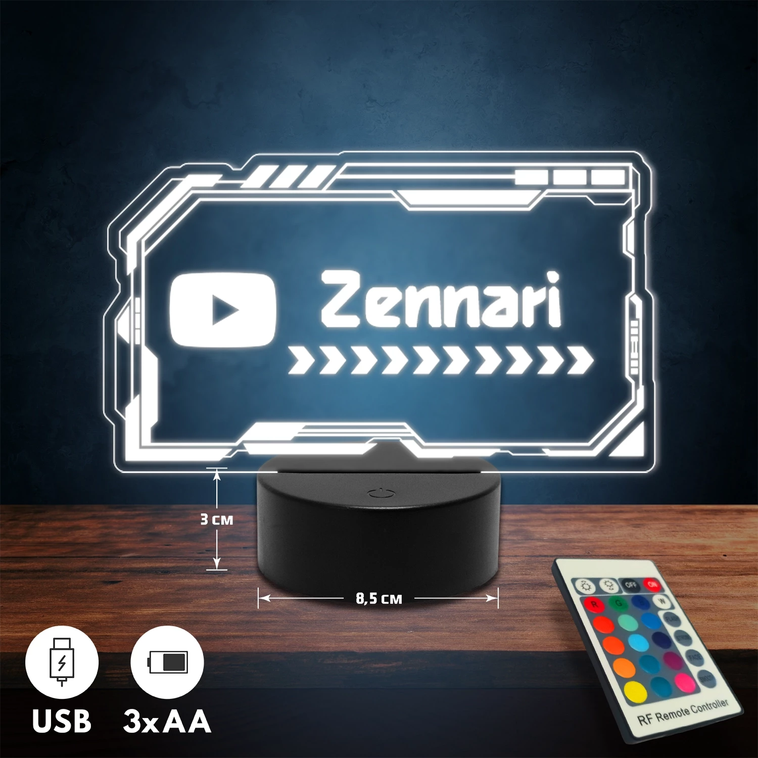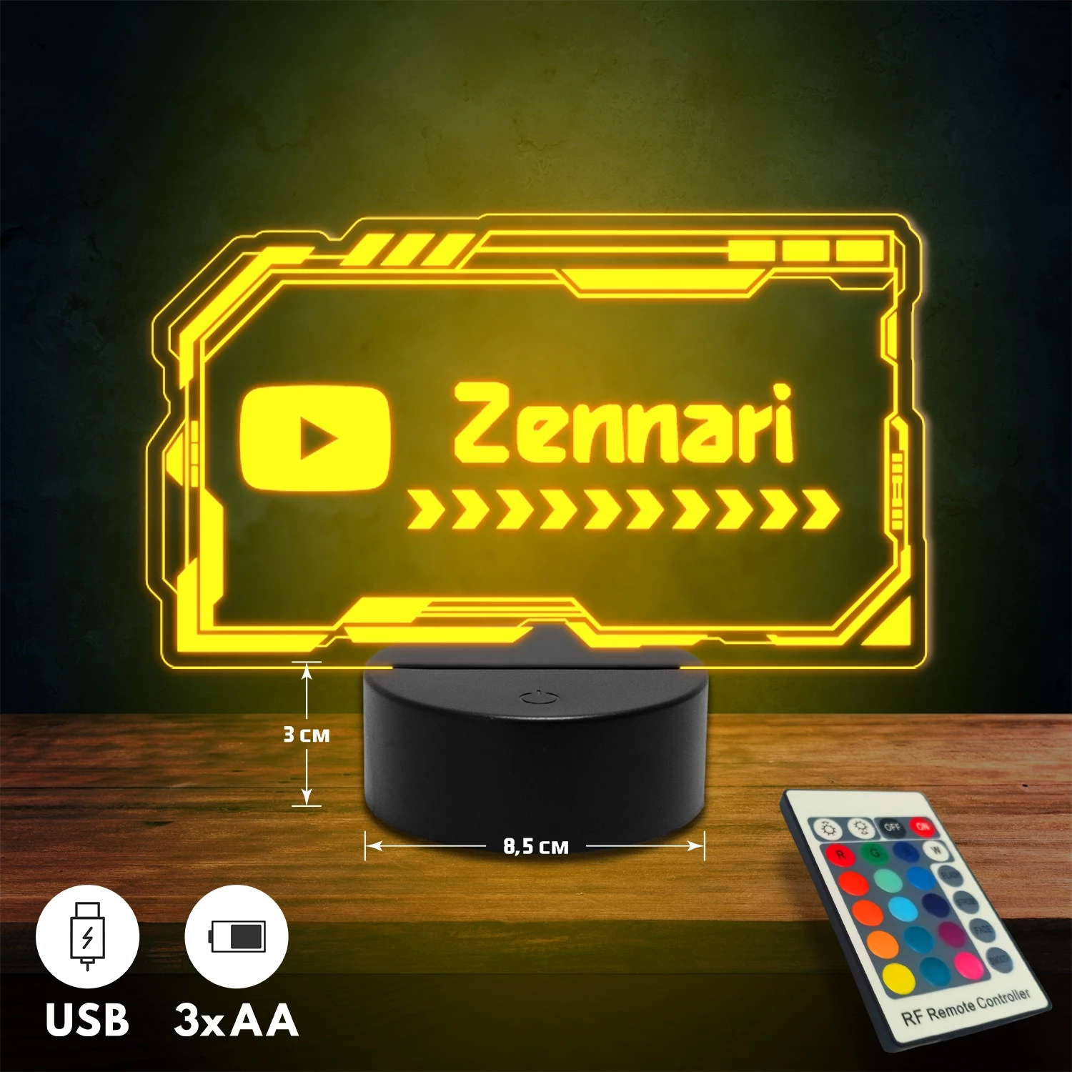 YouTube logós 3D Led lámpa